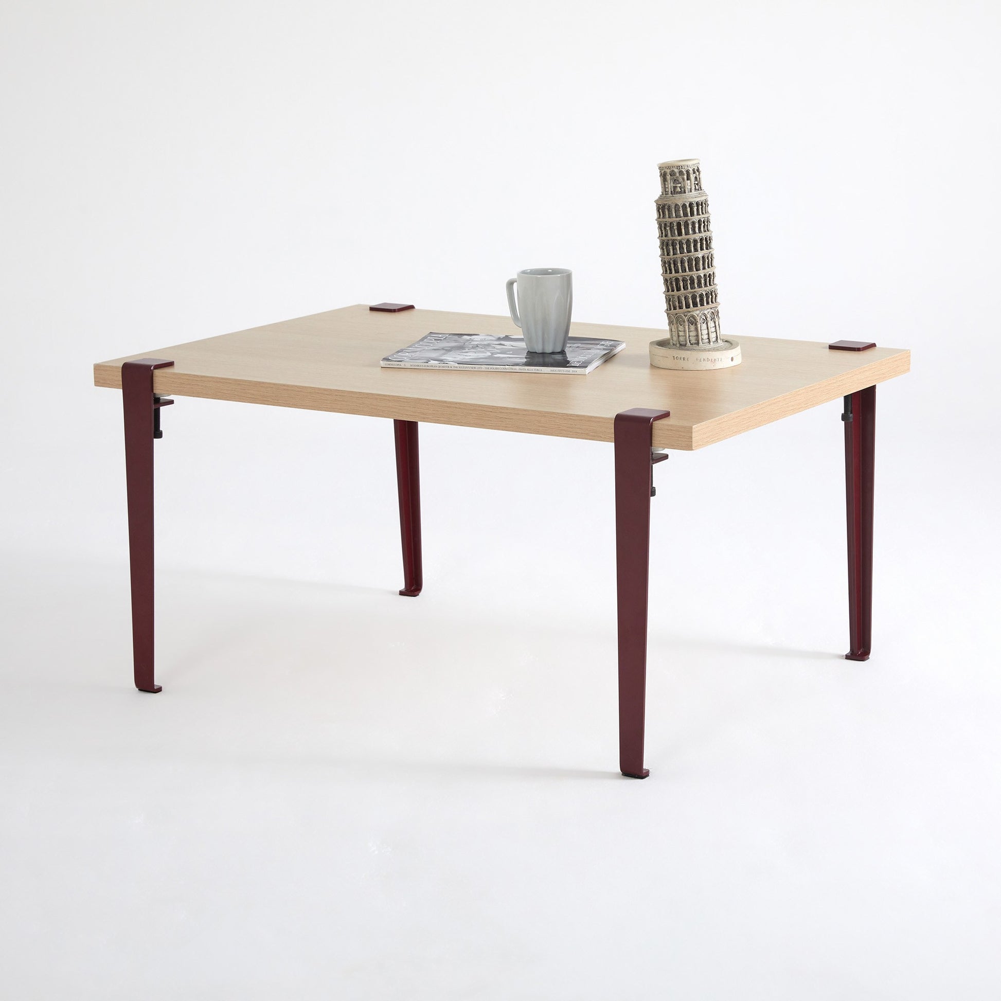 Mesa de Centro em Madeira Burgundy com Pernas de Aço - Montagem Rápida e Fácil 90x60cm