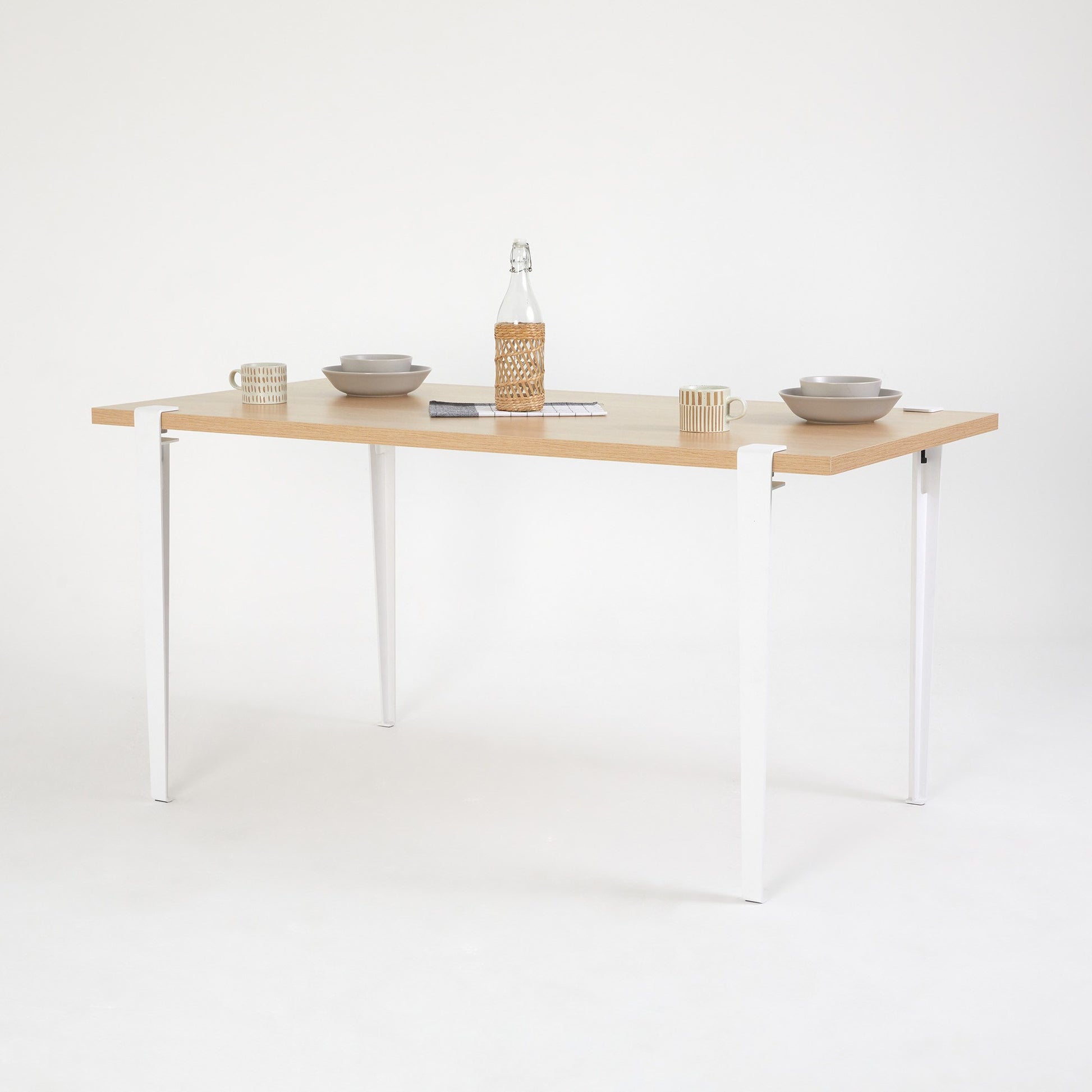 Transforme o seu espaço de refeições com esta elegante mesa de jantar que combina na perfeição o calor da madeira com a sofisticação do branco!