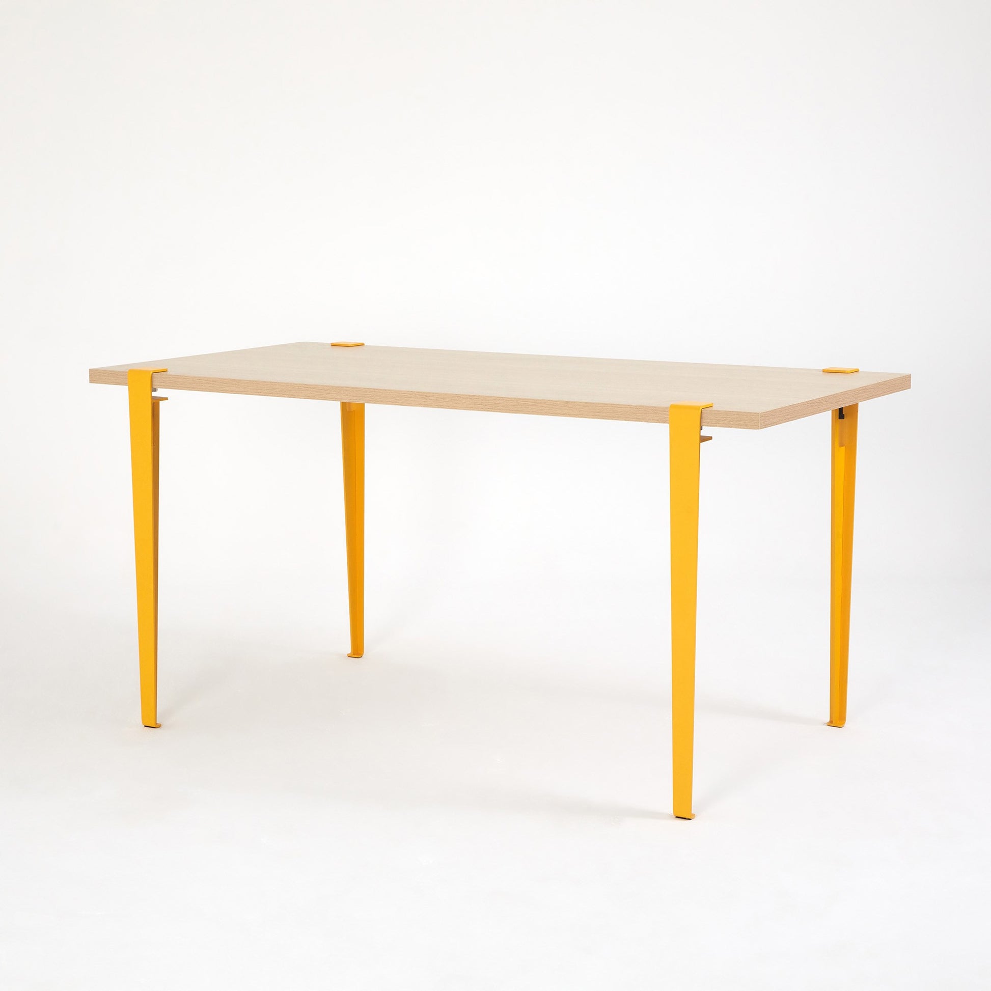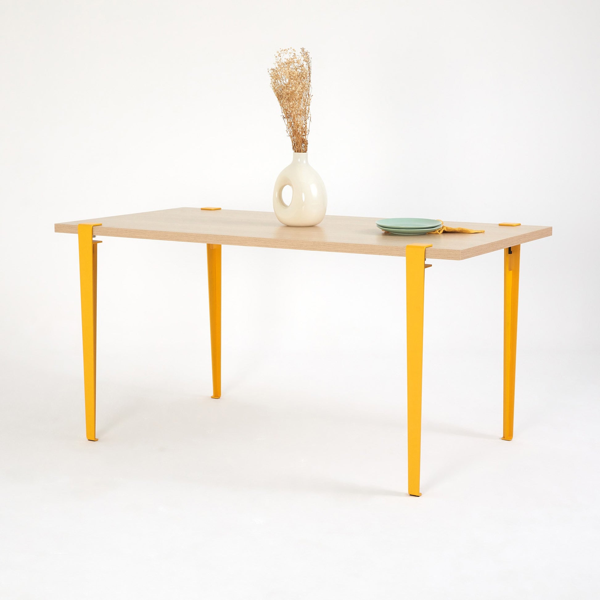 Mesa de Jantar Amarela em Madeira com Pernas de Aço - Montagem Rápida e Fácil 150x75cm