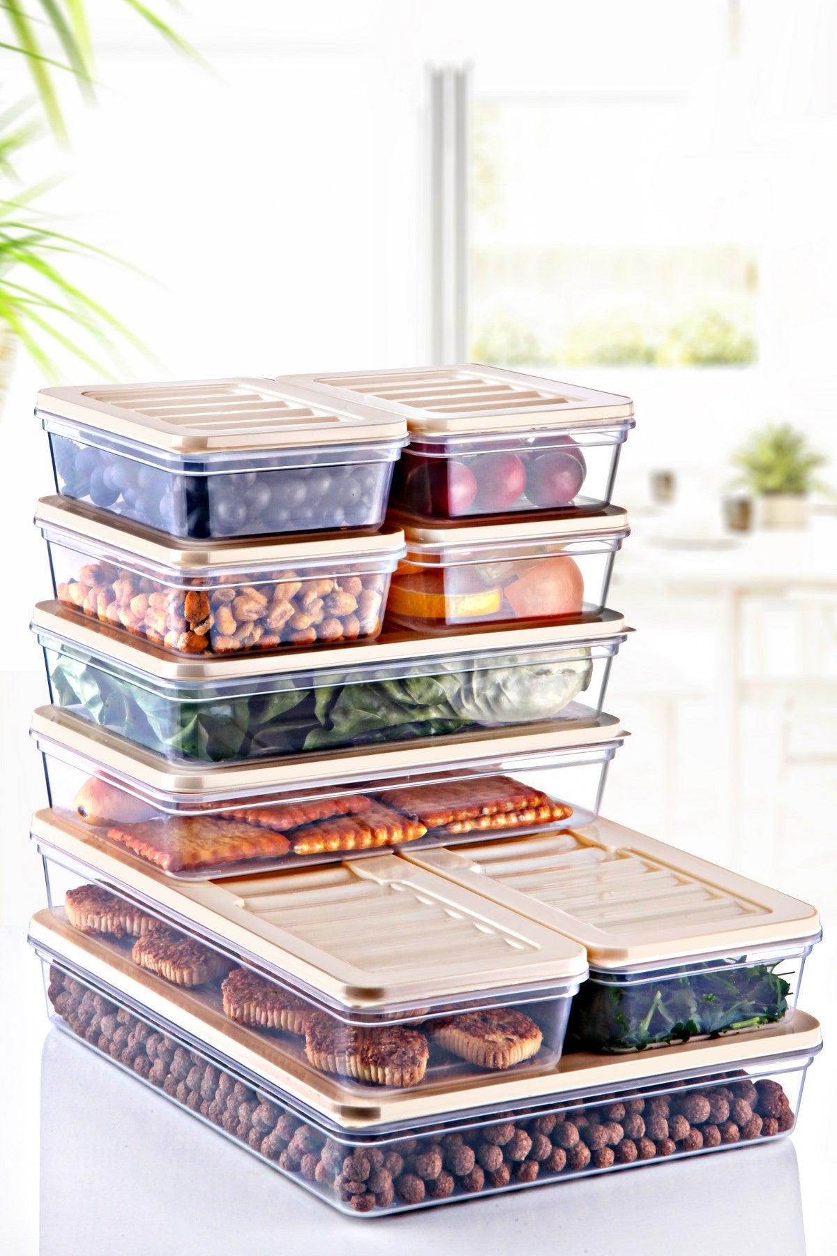 A cor creme dessas caixas de armazenamento adiciona um toque de elegância à sua cozinha. Elas são não apenas práticas, mas também estilosas, tornando-se uma ótima adição a qualquer lar. Diga adeus aos recipientes desiguais e olá a um espaço coeso e organizado.