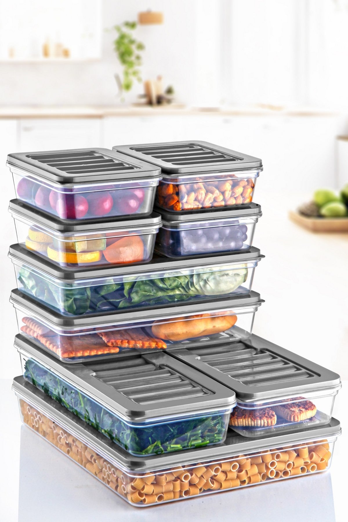 Com quatro caixas pequenas, duas médias, duas grandes e uma extra-grande, você terá muitas opções para armazenar tudo, desde lanches até sobras. Mantenha seus alimentos frescos e facilmente acessíveis com esses práticos recipientes de armazenamento.