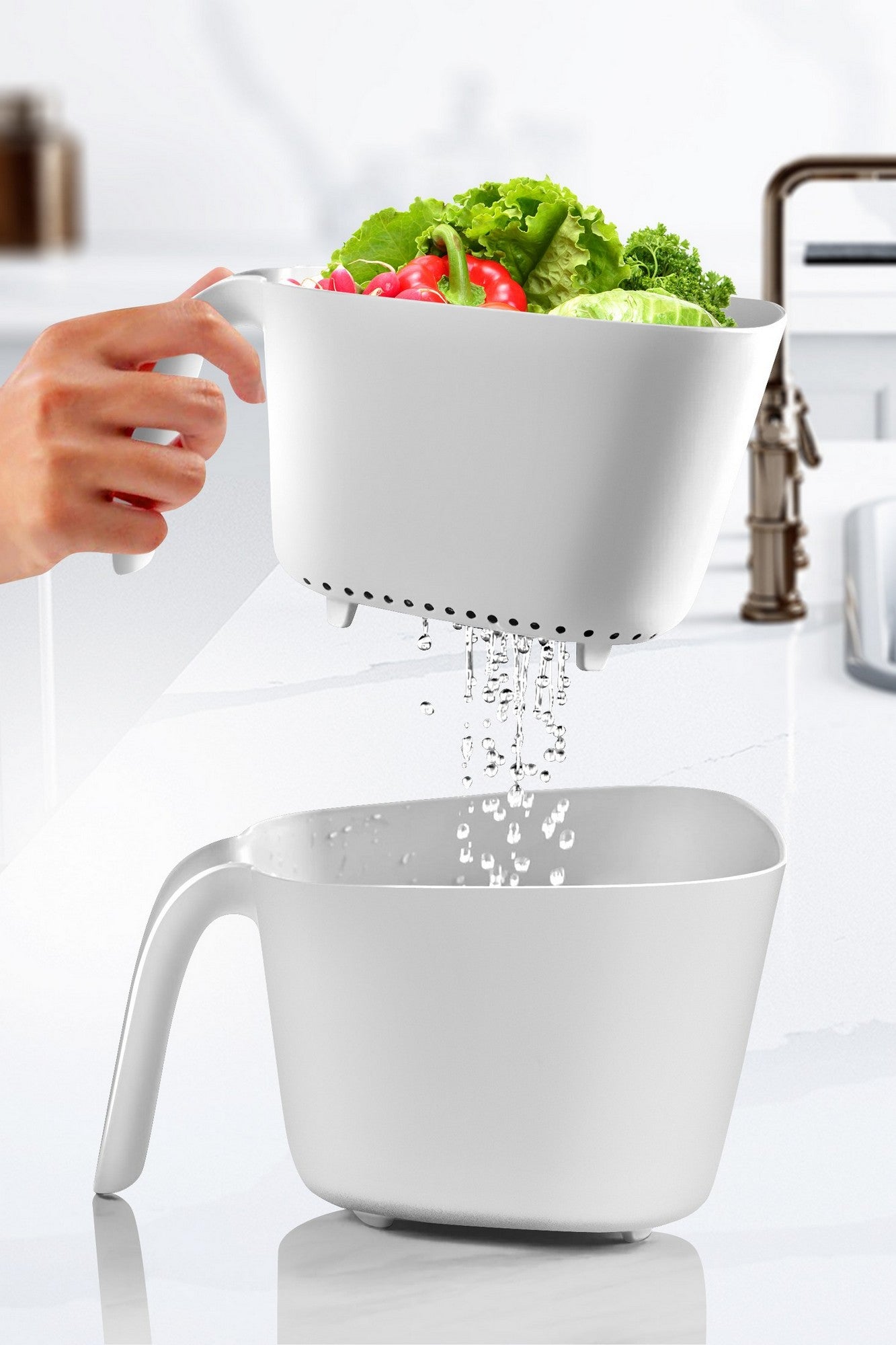 Seja para enxaguar frutas e vegetais, escorrer macarrão ou coar molhos, nosso Conjunto de Coadores torna o processo rápido e fácil. O tamanho conveniente de 24 x 21 x 14 cm garante que você tenha bastante espaço para trabalhar, enquanto a construção robusta garante uma experiência sem complicações a cada uso.