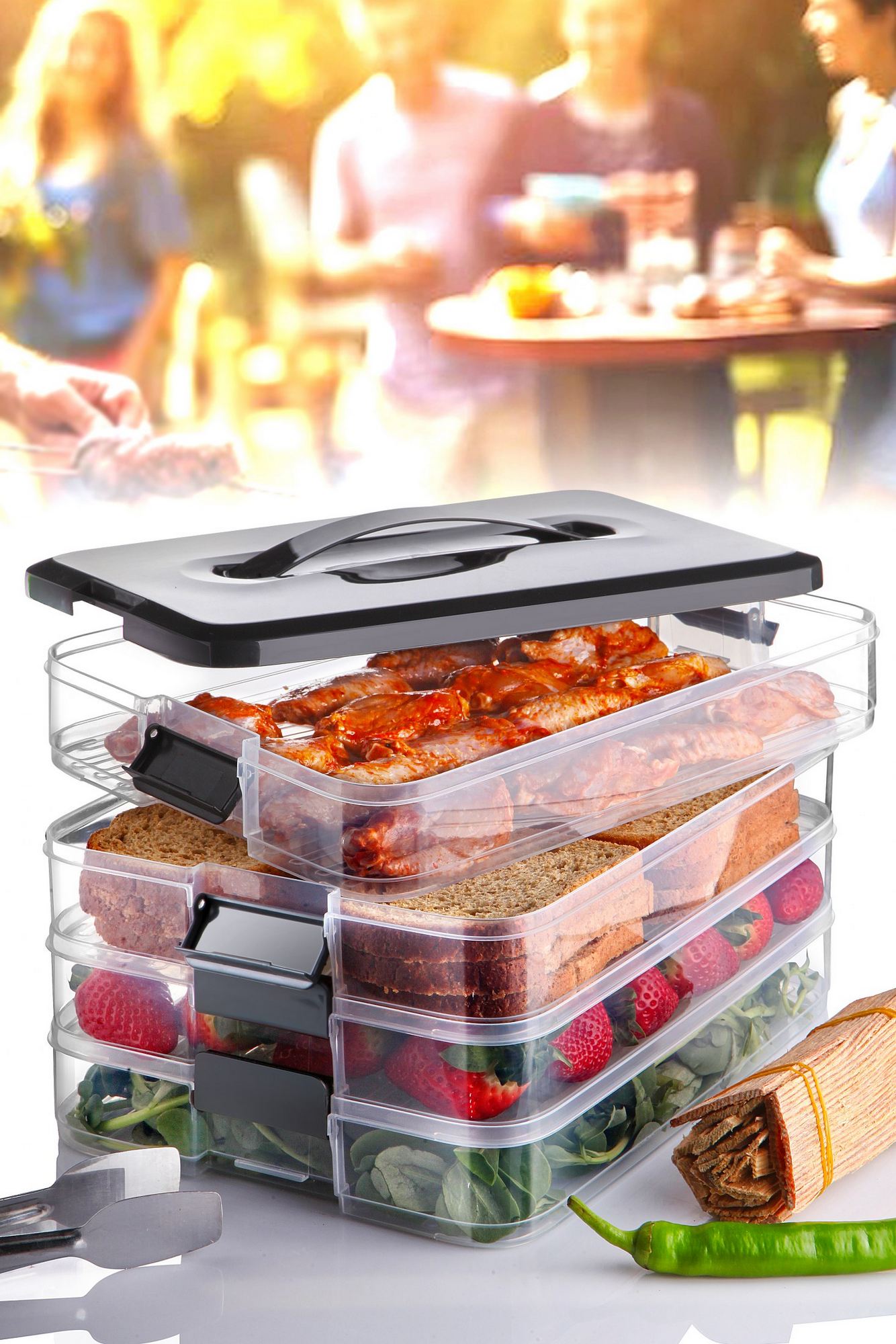 Conjunto de caixas de armazenamento – 30 x 21,5 x 5 cm – Preto – Plástico