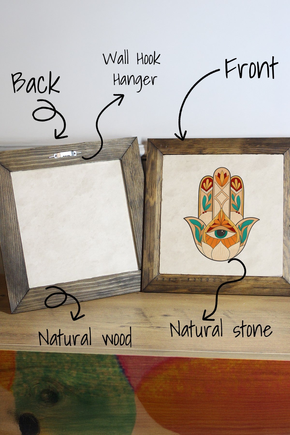Quadro Decorativo em Pedra com Moldura de Madeira, Multicolor, 15,5 x 15,5 cm – Impressão UV