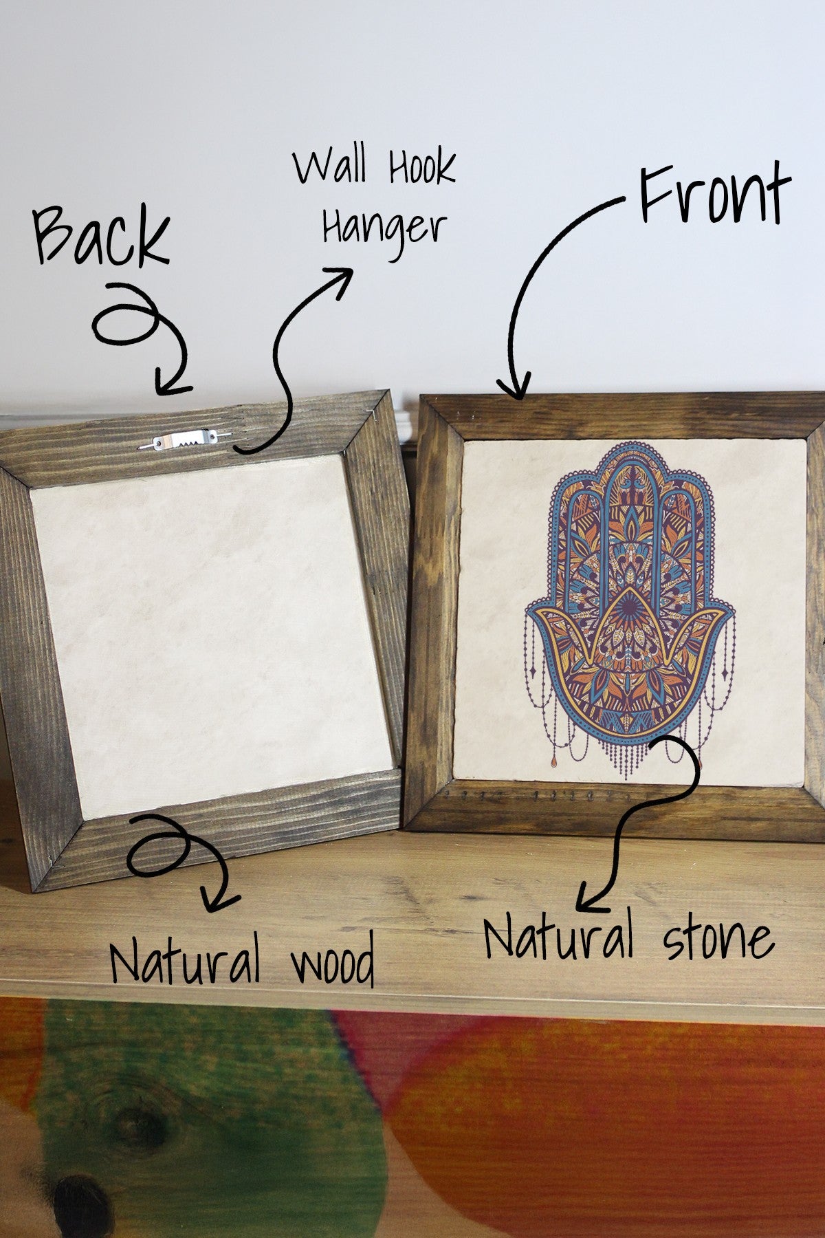 Quadro Decorativo Ersytastablo21-26, Multicolor, Pedra 100%, Moldura de Madeira 2,5 cm, Impressão UV, 26x26 cm