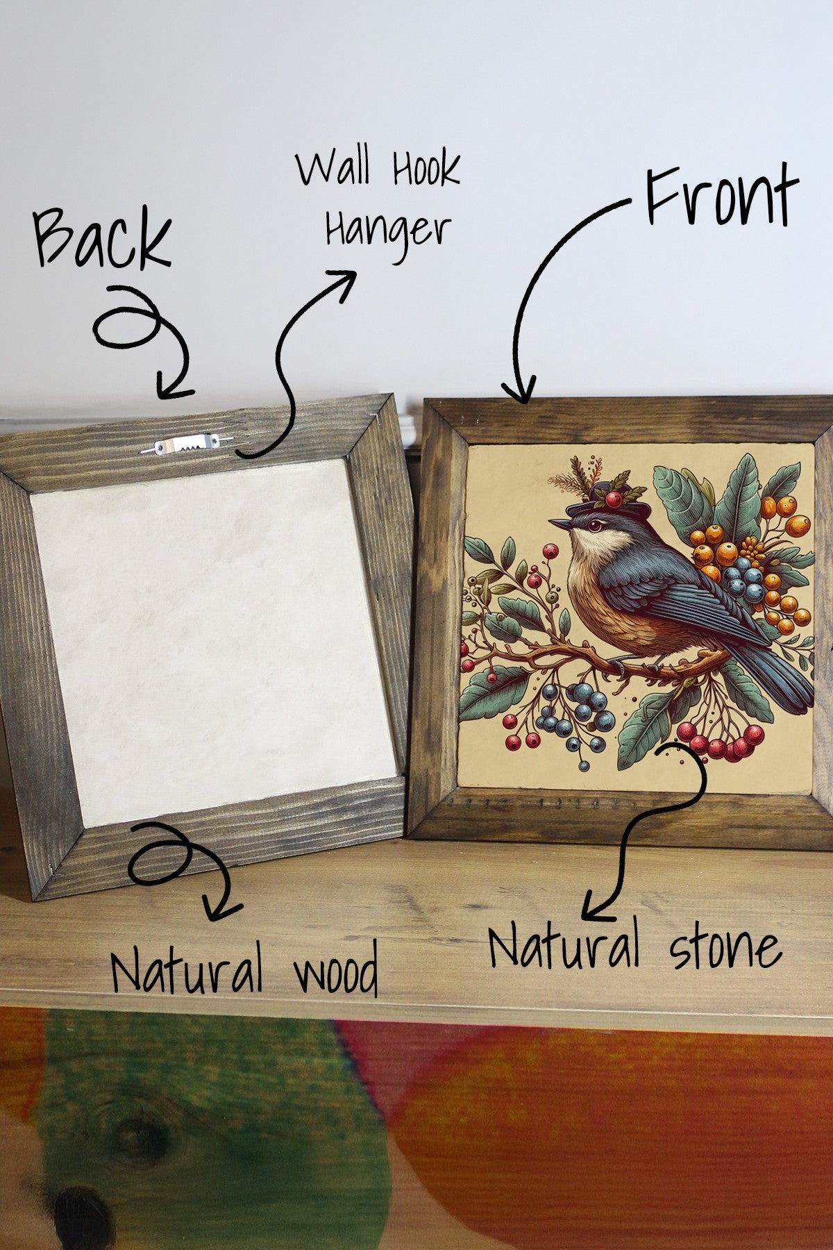 Quadro Decorativo Ersytastablo23 26x26 cm em Pedra com Moldura de Madeira (2,5 cm) – Multicolor, Impressão UV