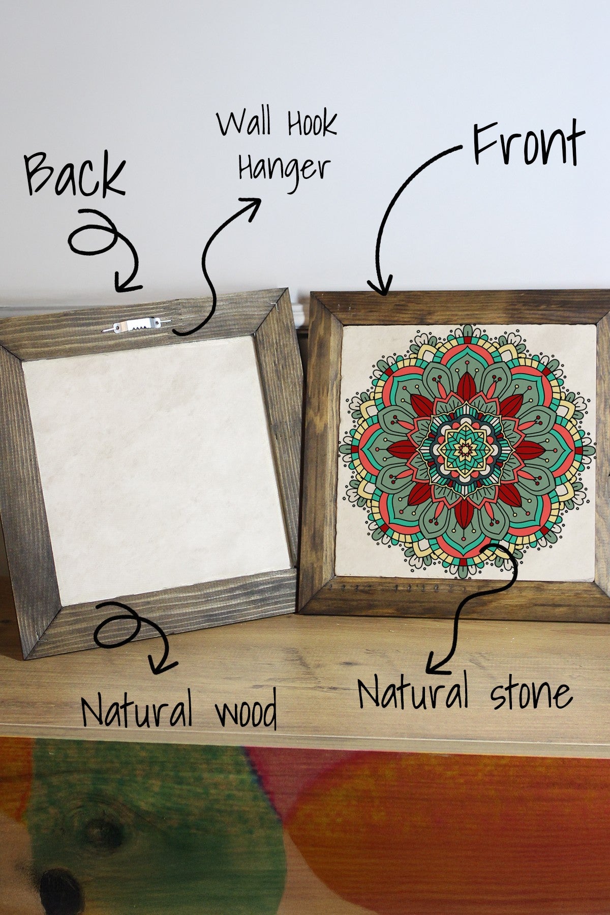 Ersytastablo28 - 16 Quadro Decorativo em Pedra com Moldura de Madeira 15,5 x 15,5 cm – Multicolor, Impressão UV