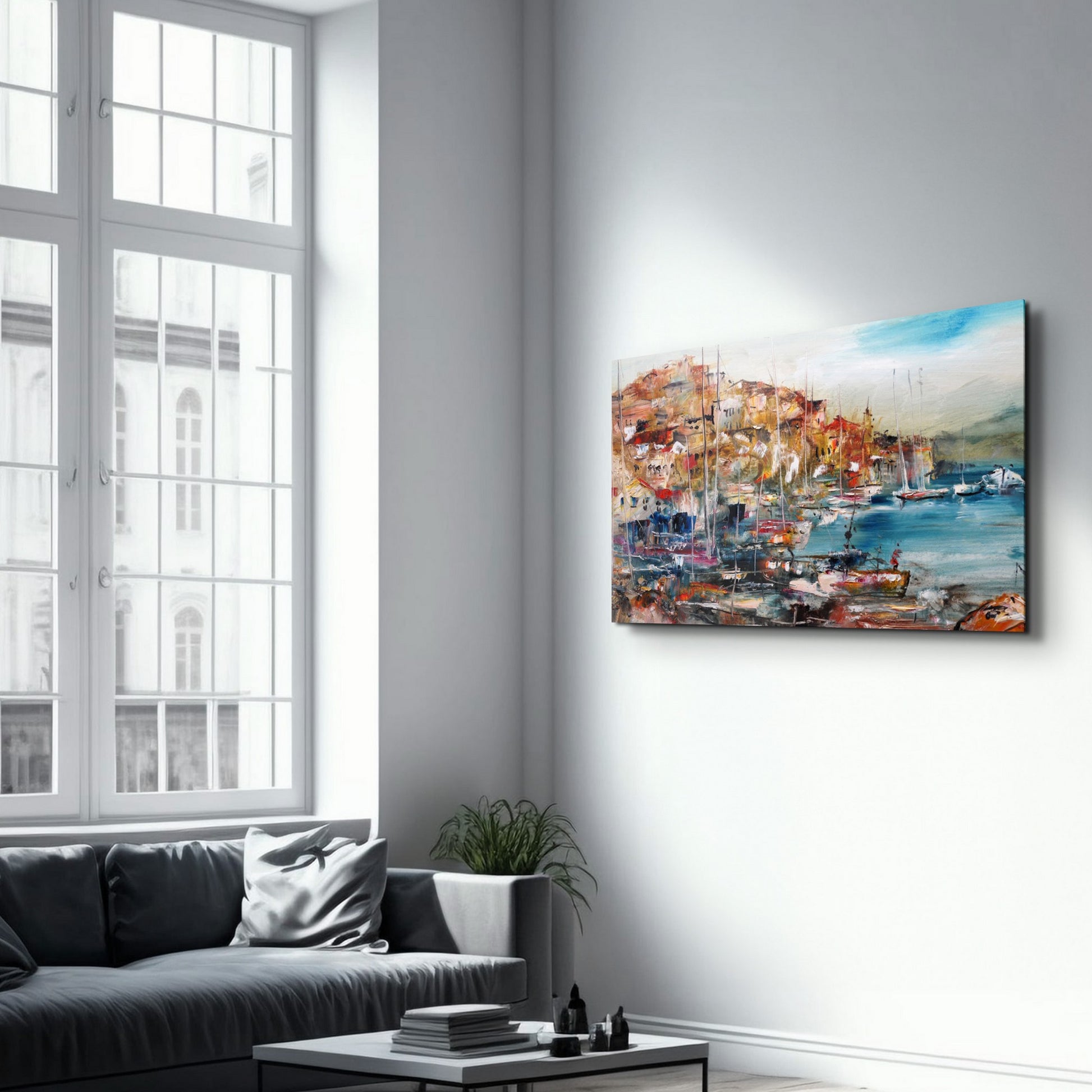 O vidro temperado oferece 5 vezes mais resistência que o vidro comum, tornando esta obra praticamente indestrutível. A tecnologia de impressão UV garante que as cores se mantêm vivas e brilhantes ao longo dos anos, mesmo expostas à luz solar.