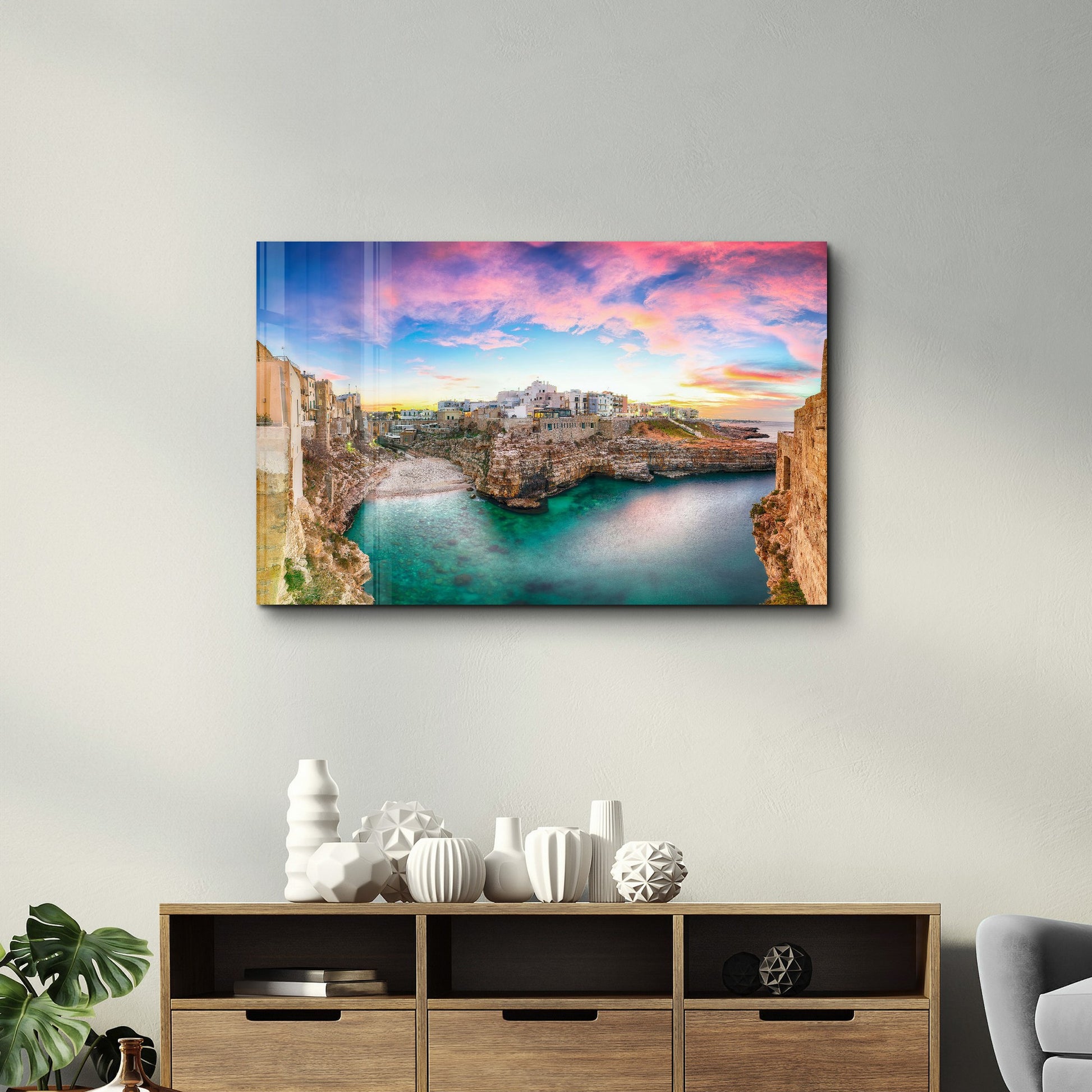 Com apenas 2,9 kg, este quadro oferece a combinação perfeita entre leveza e resistência. A tecnologia de impressão UV garante cores intensas e duradouras, enquanto o vidro temperado proporciona um acabamento luxuoso e moderno que reflete a luz de forma sublime.