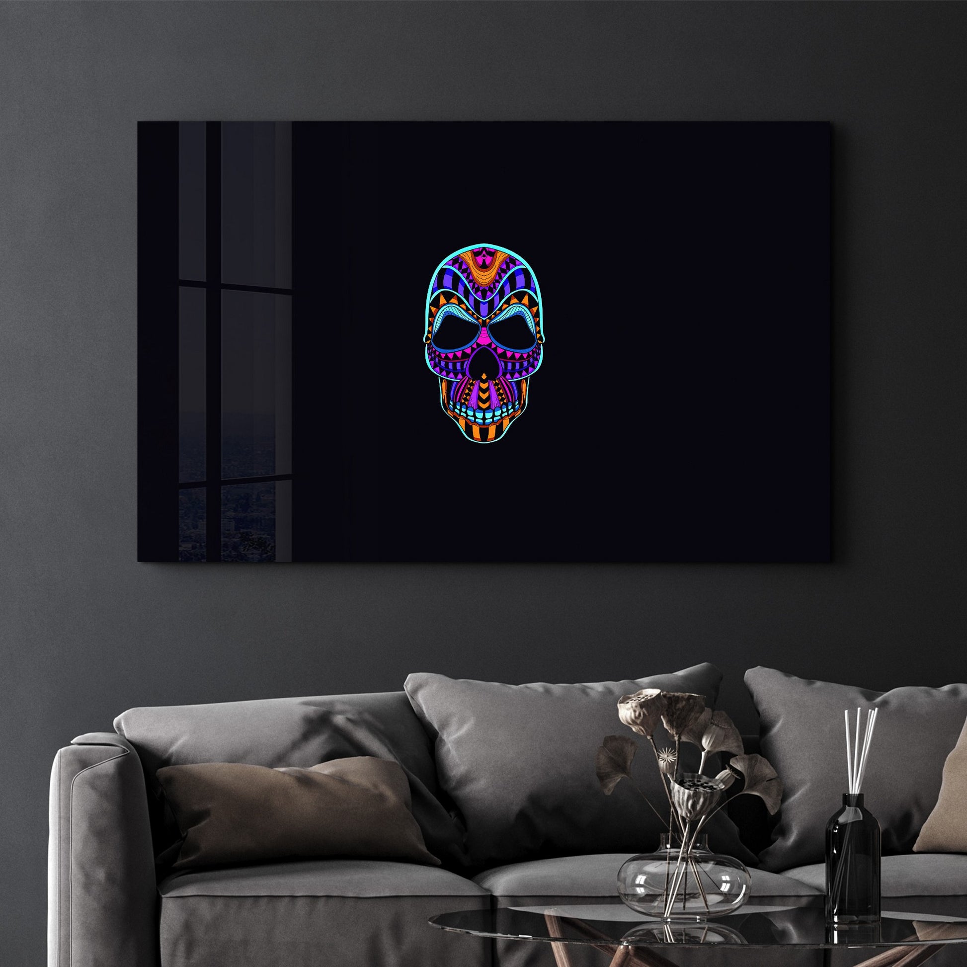 Esta peça única combina arte contemporânea com tecnologia avançada, resultando numa decoração sofisticada que eleva instantaneamente o nível de qualquer espaço. O vidro temperado garante segurança e longevidade, enquanto a impressão UV assegura que as cores se mantêm vivas e intensas ao longo dos anos.