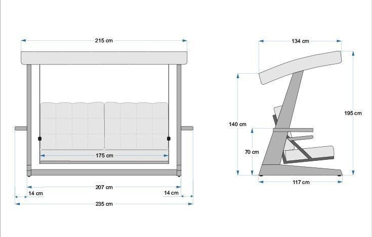 - Tamanho da Cadeira: Largura: 235 cm, Altura: 195 cm, Profundidade: 117 cm