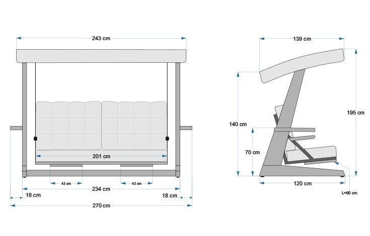 - Tamanho da Cadeira: Largura: 270 cm, Altura: 195 cm, Profundidade: 120 cm