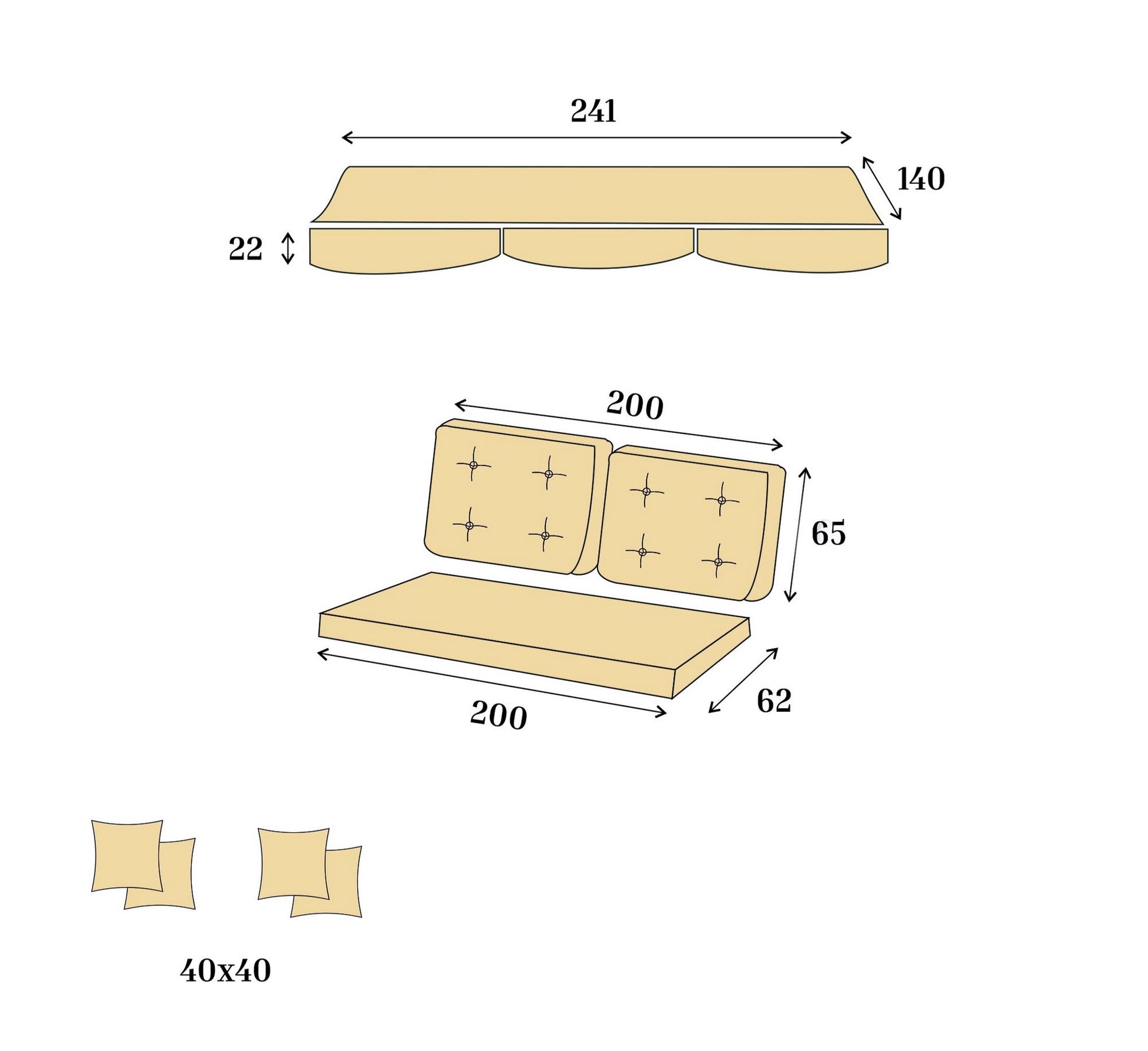 - Tamanho do Acolchoado: Largura: 201 cm, Profundidade: 70 cm