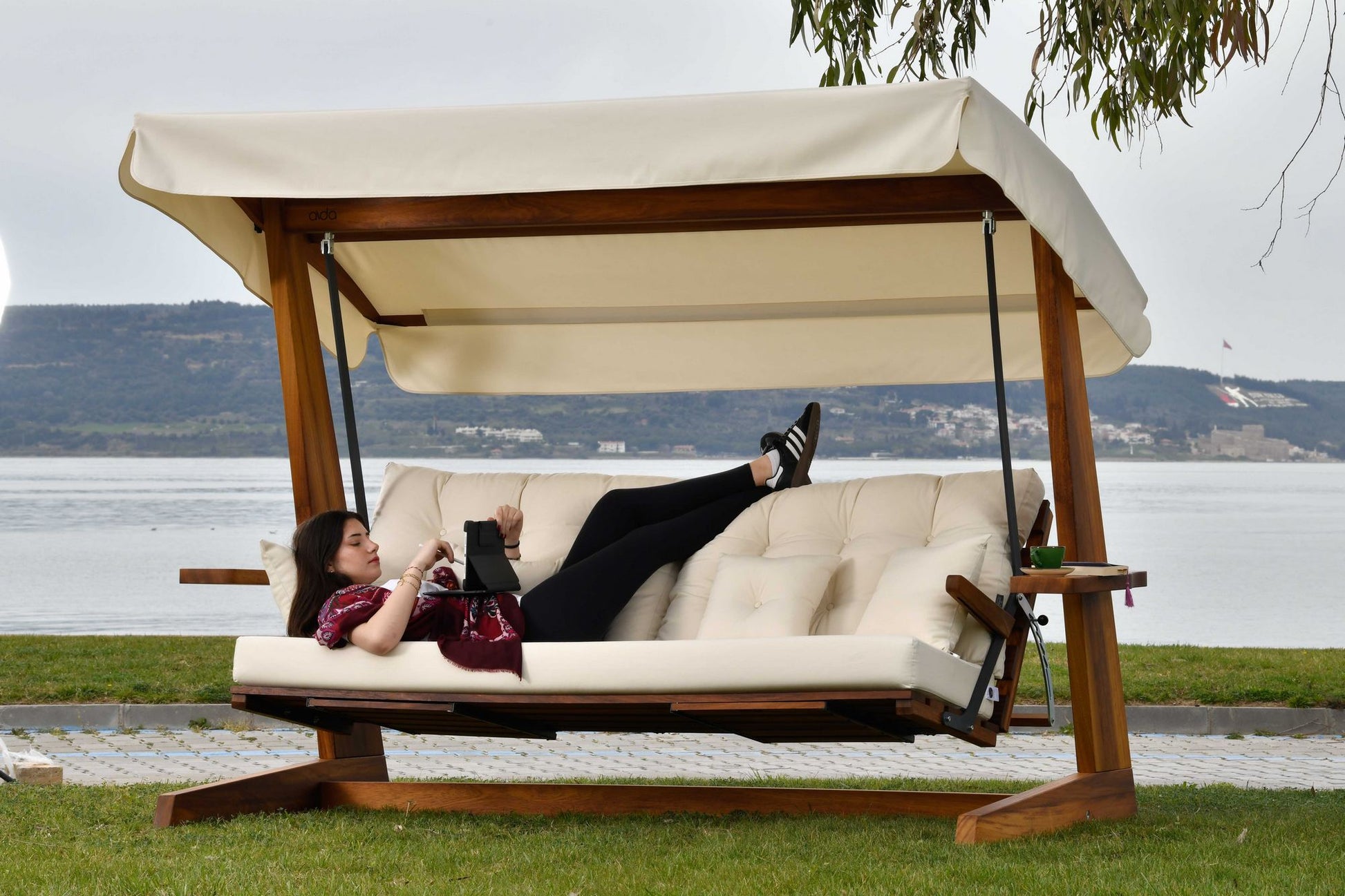 Baloiço de Jardim triplo – 270 cm x 195 cm x 120 cm – Bege – Madeira Iroko