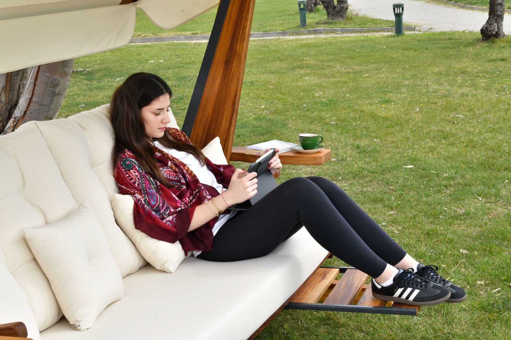 Escape para o seu próprio oásis pessoal com nossa Cadeira de Balanço Tripla para Jardim. Imagine-se balançando suavemente na brisa, cercado pela beleza da natureza. Esta luxuosa cadeira de balanço não é apenas um móvel, é uma experiência.