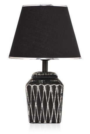 Ilumine seu espaço com o design elegante e moderno de nossa Lâmpada de Mesa com Corpo de Metal. A combinação de cores preta e prata adiciona um toque de sofisticação a qualquer ambiente, enquanto a cúpula de tecido suaviza a luz para uma atmosfera quente e acolhedora.