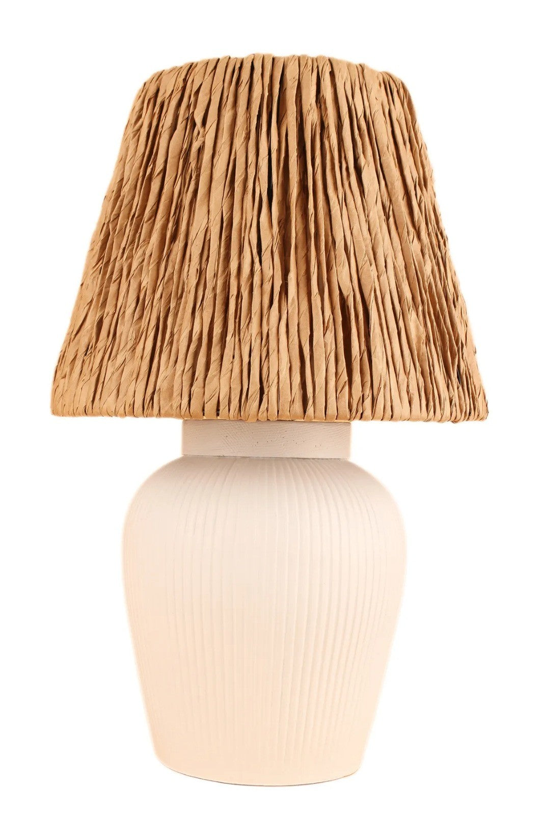 Candeeiro de Mesa – 25 cm diâmetro – Branco e Carvalho – Cerâmica e Juta