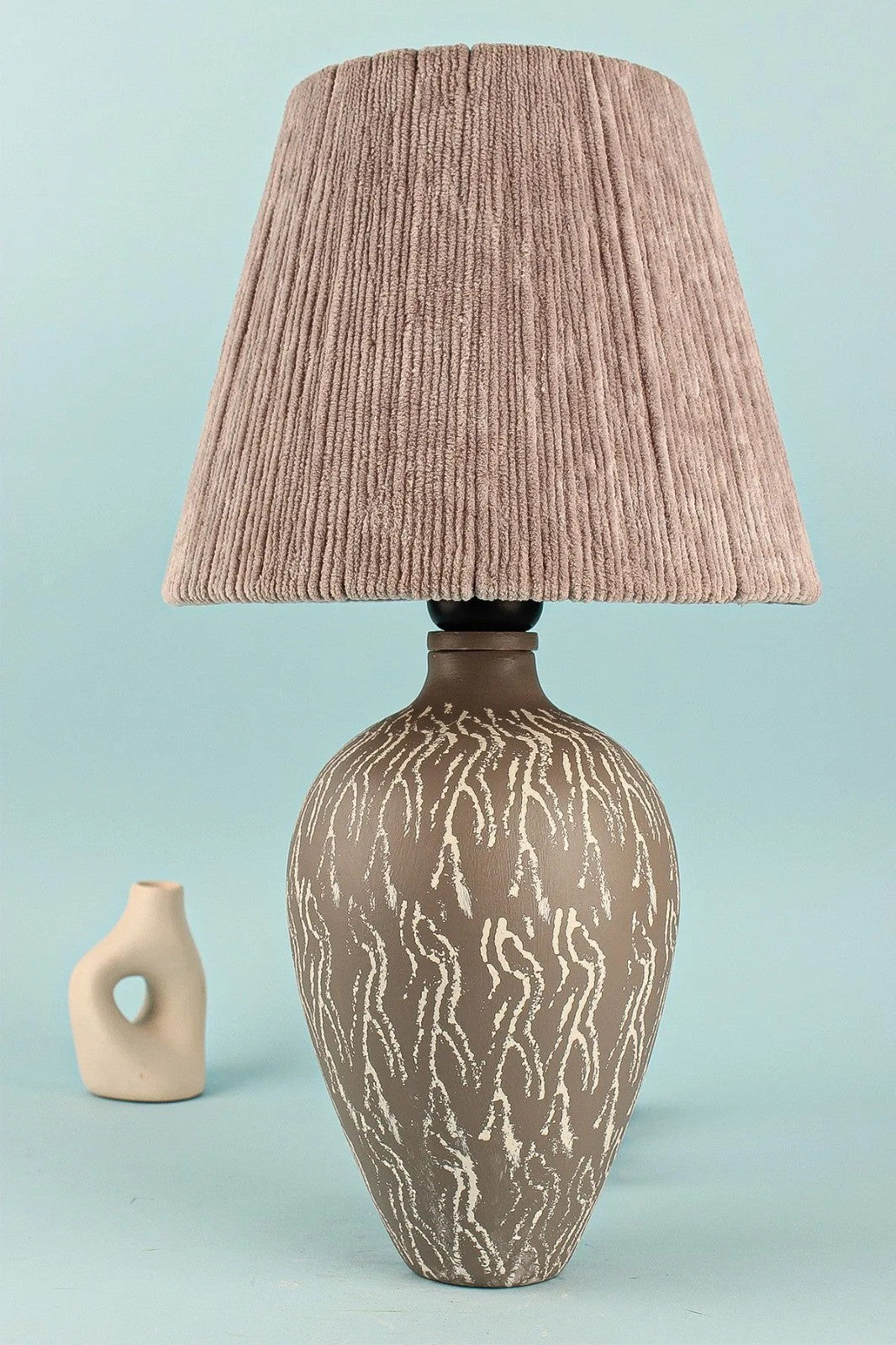 O corpo de cerâmica da lâmpada exala uma sensação de luxo, enquanto a tampa de veludo adiciona um toque macio e macio. O design elegante da lâmpada complementará qualquer estilo de decoração, do contemporâneo ao tradicional.
