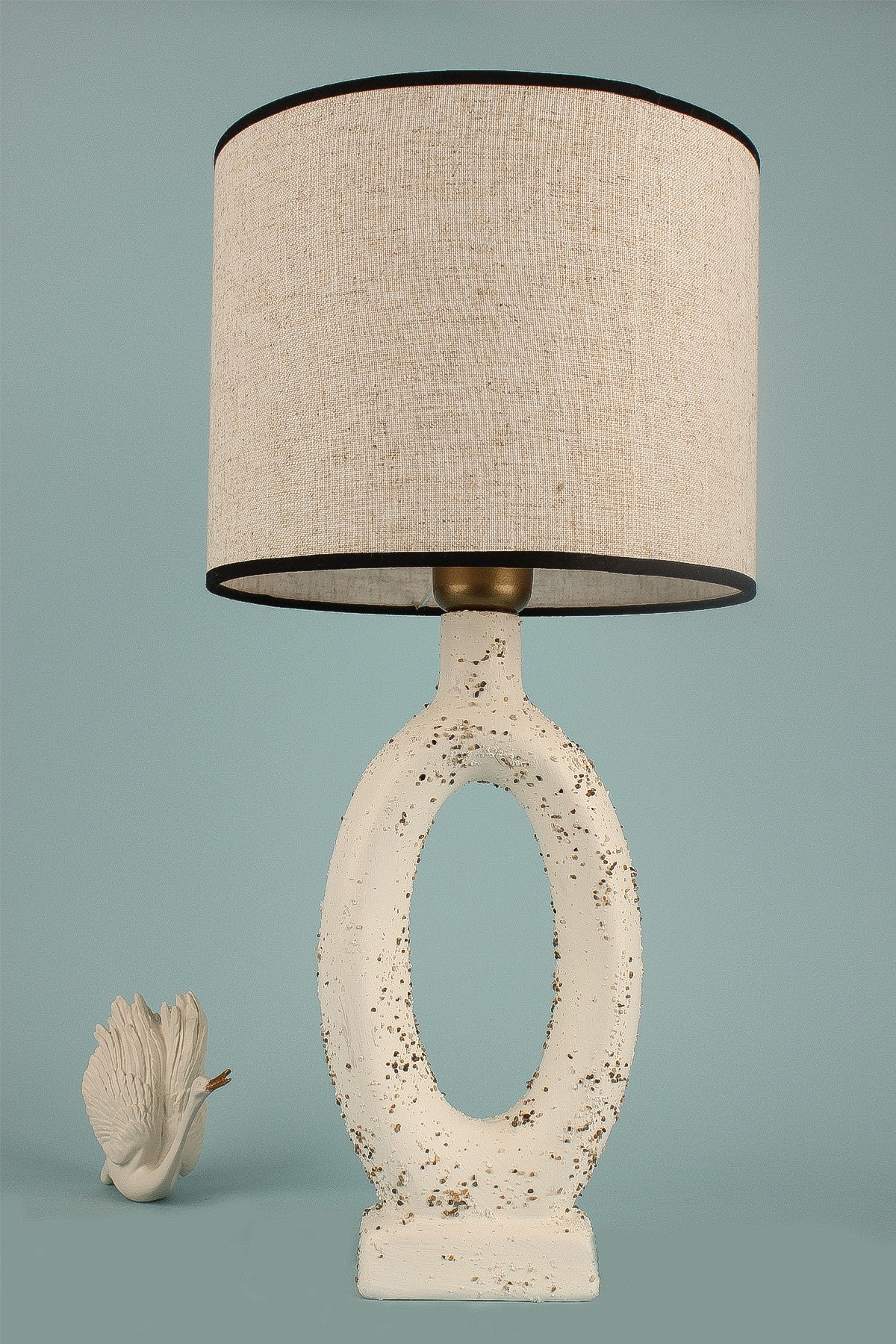 O candeeiro de mesa em cerâmica apresenta um design elegante e moderno que complementa sem esforço qualquer estilo de decoração. Quer o coloque numa mesa de cabeceira, secretária ou aparador, este candeeiro irá elevar instantaneamente o aspeto do seu espaço com a sua elegância discreta.