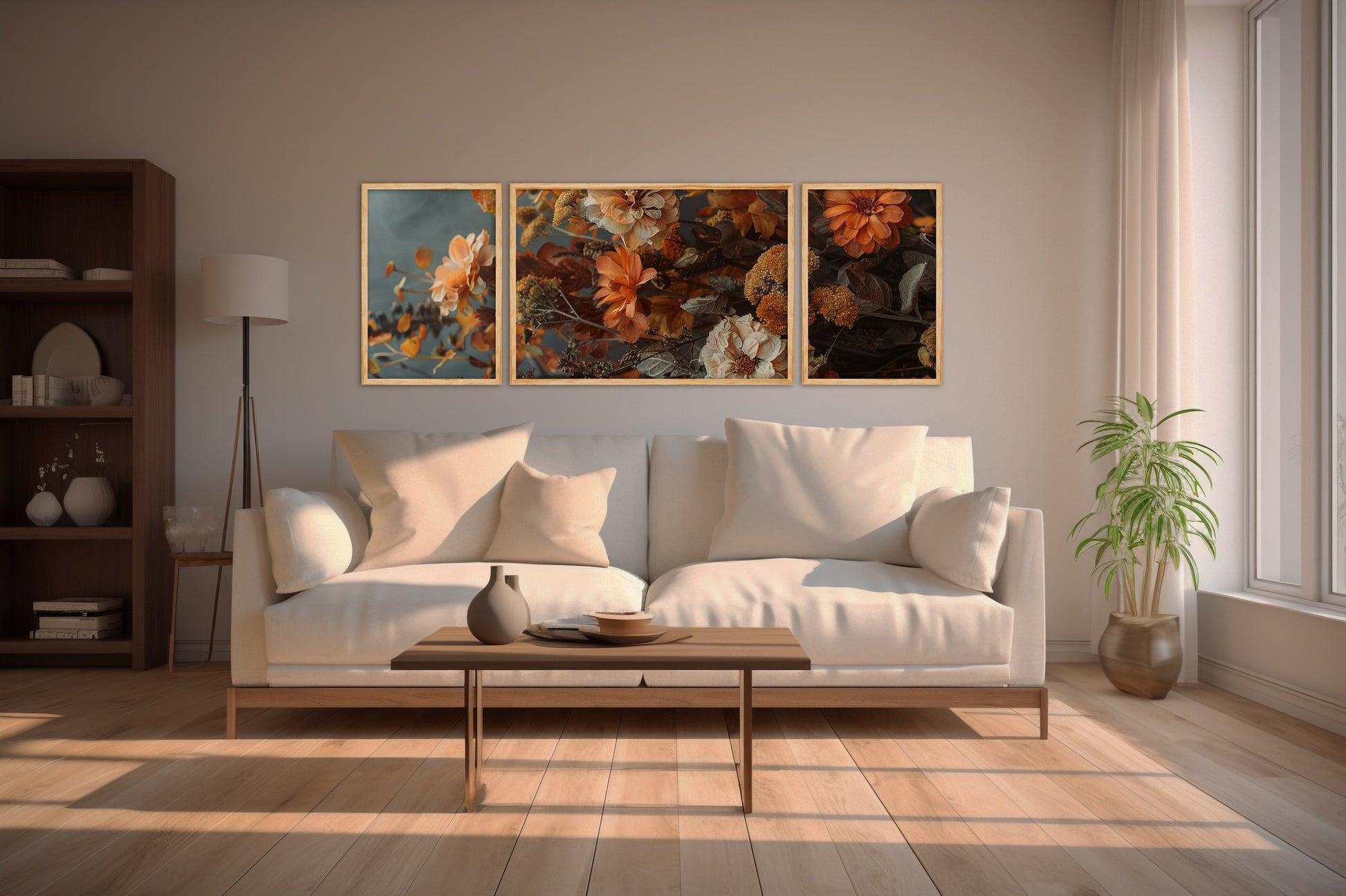 - Design Tríptico Sofisticado: Três painéis harmoniosamente coordenados que criam uma narrativa visual única