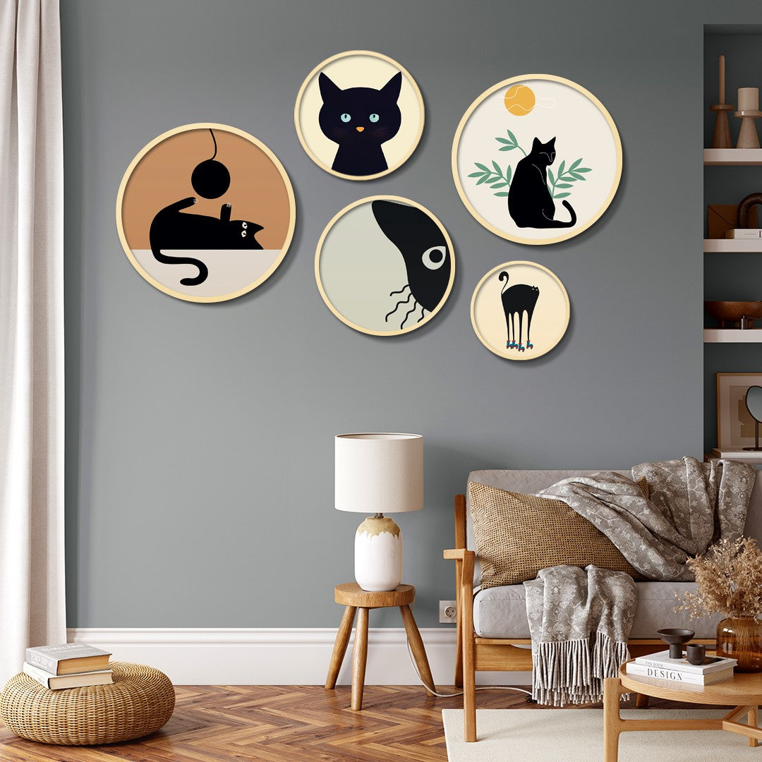 Conjunto Decorativo de 5 Quadros MDF Multicolor Yats-07 - Madeira Maciça com Moldura