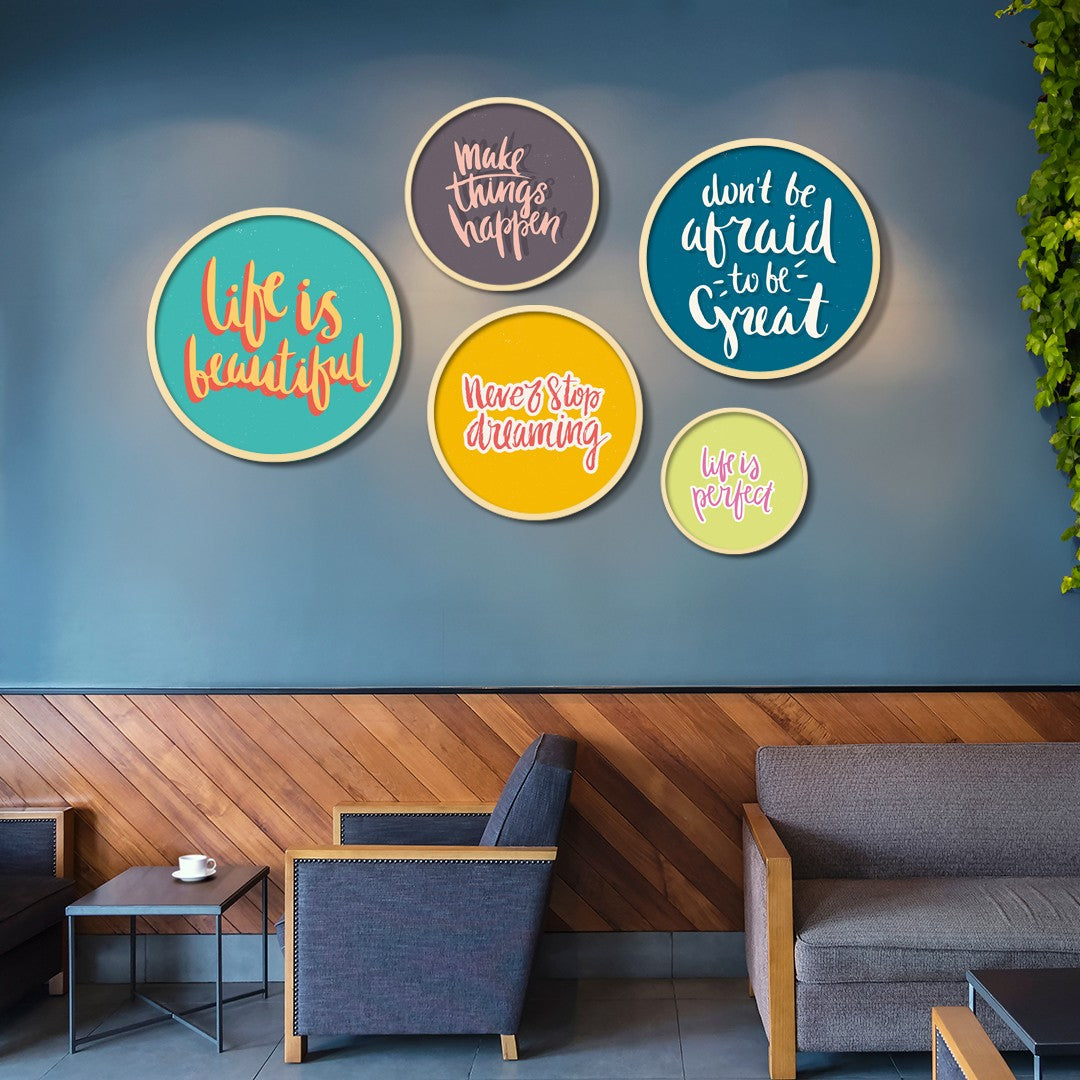 Conjunto de 5 Quadros Decorativos em MDF com Moldura de Madeira Maciça – Yats-15, Multicolor (Espessura 1,5 cm)