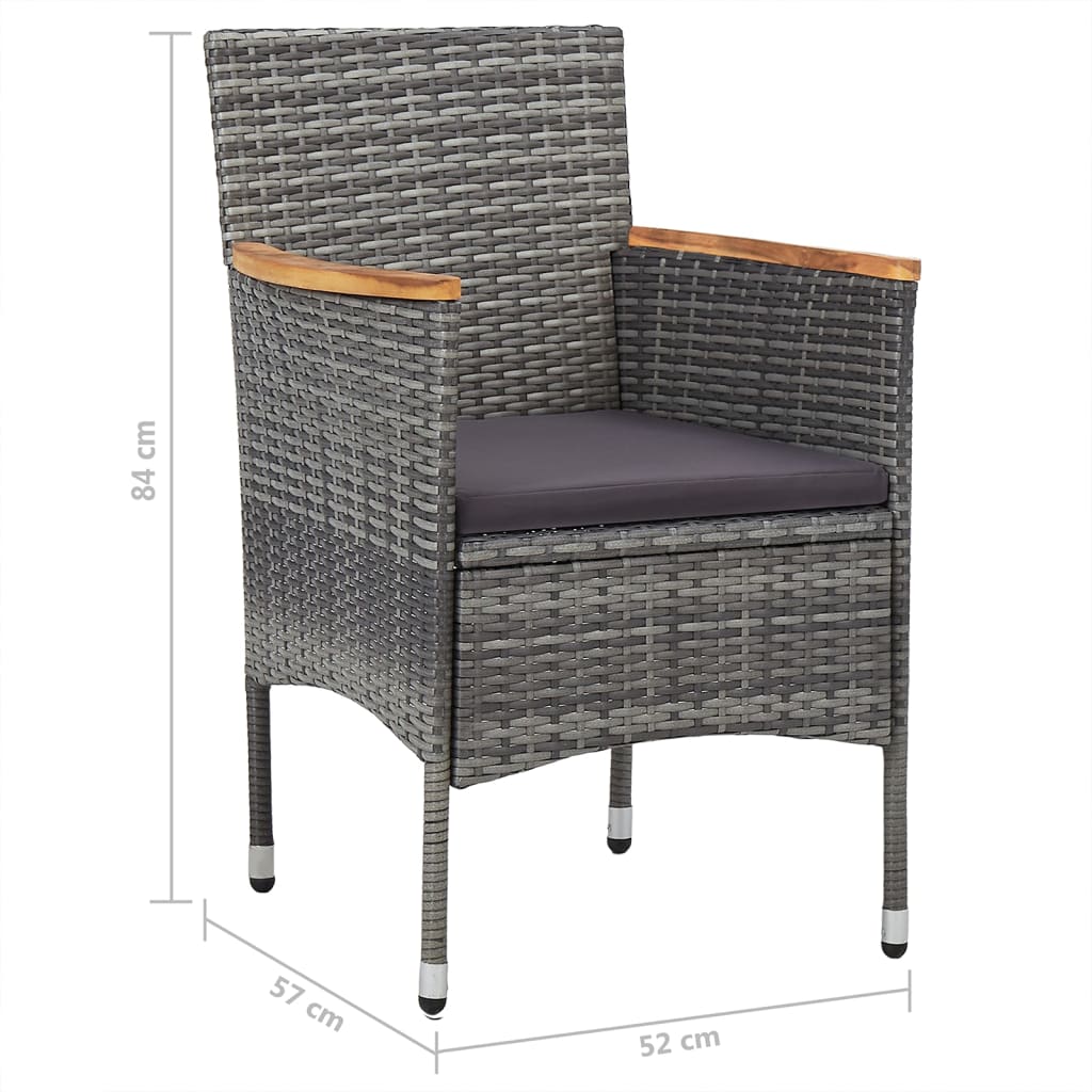 Esta mesa de exterior é feita em madeira de acácia maciça, o que a torna resistente e estável. A superfície com acabamento a óleo facilita a limpeza da mesa com um pano húmido. As pernas curvas contribuem ainda para o seu design elegante. Apresentando uma estrutura de aço coberta com vime PE resistente às condições meteorológicas, estas cadeiras de jantar são robustas e fáceis de limpar. Os almofadões densamente acolchoados acrescentam um conforto ao seu tempo de descanso.