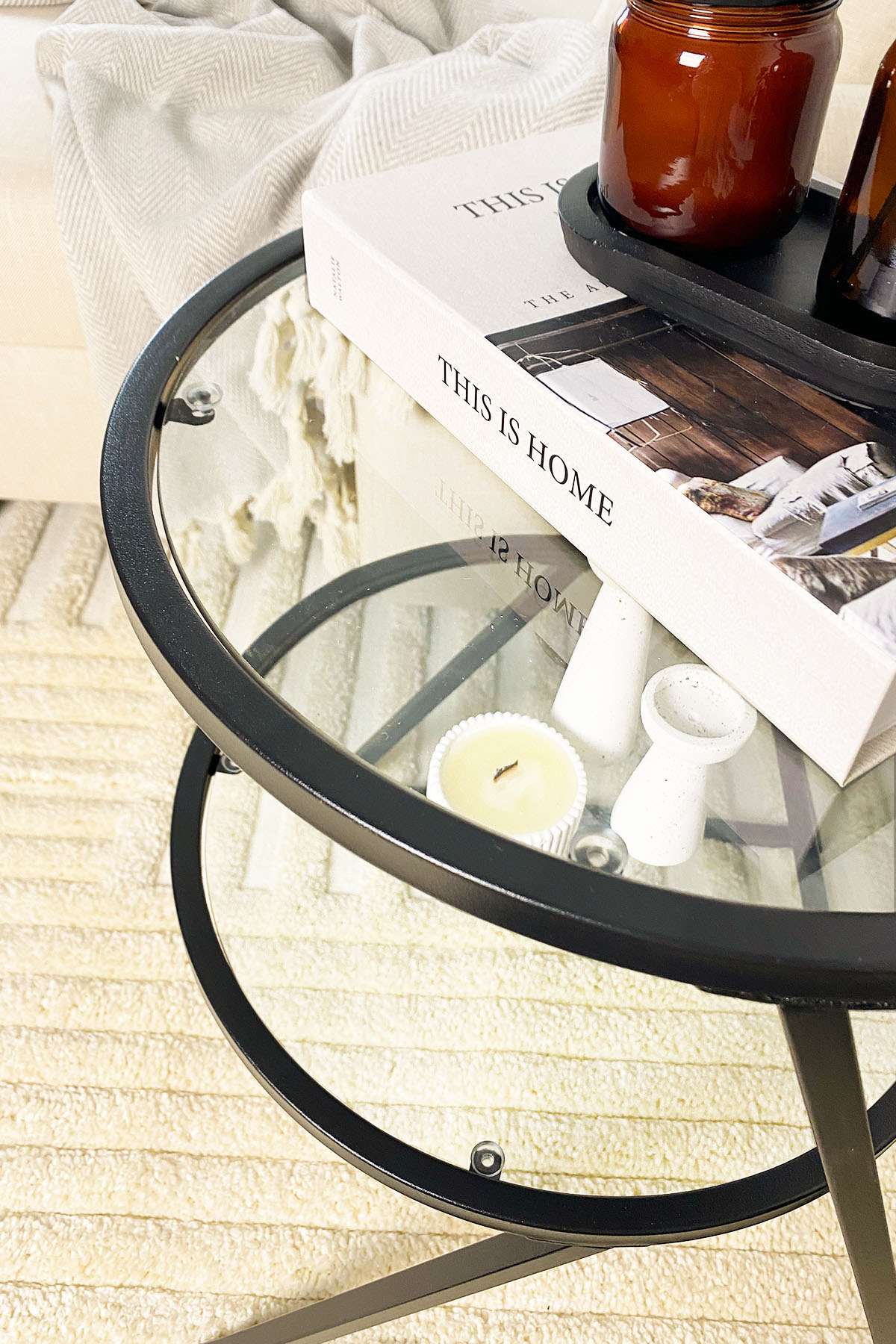 Esta mesa lateral não é apenas um móvel - é uma declaração de estilo. O vidro temperado oferece uma superfície cristalina que amplia visualmente o espaço, enquanto a estrutura metálica preta adiciona um toque de sofisticação industrial. Perfeita para: