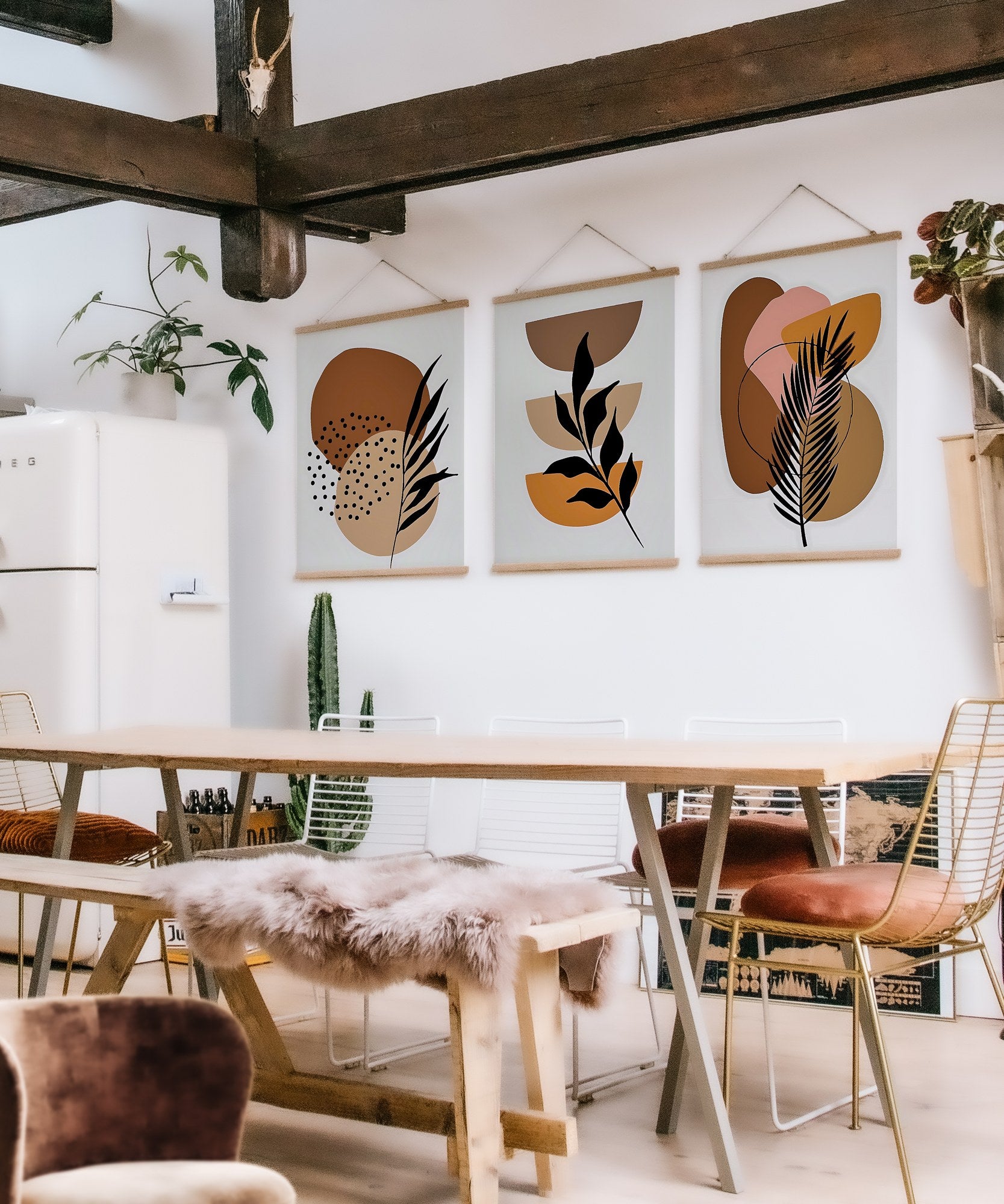 💡 Dica de Decoração: Disponha os três quadros em linha ou crie uma composição assimétrica para um efeito ainda mais moderno e dinâmico!