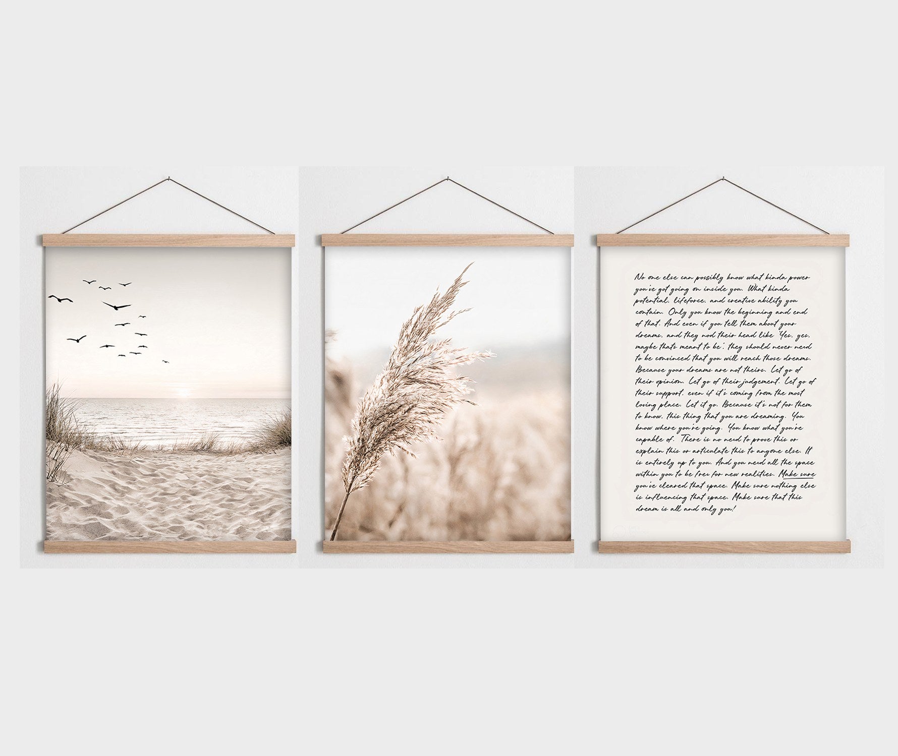 Transforme as suas paredes vazias numa galeria de arte pessoal. Este tríptico decorativo é o investimento perfeito para quem valoriza o design e a qualidade.