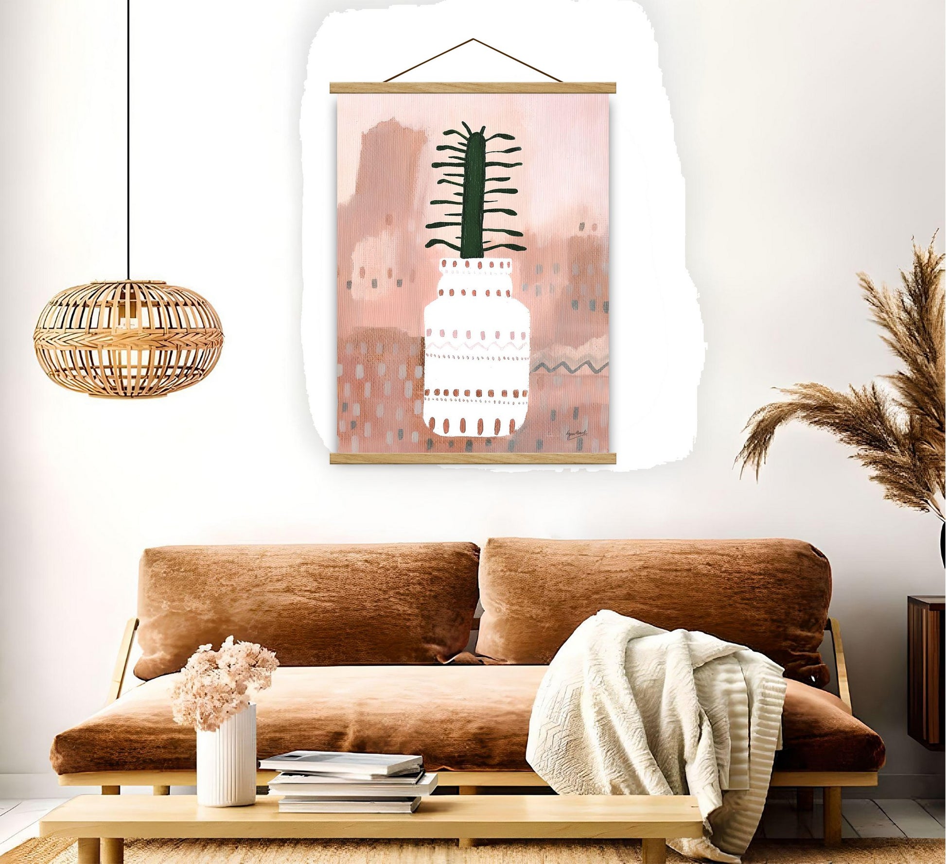 Este não é apenas um quadro - é uma declaração de estilo. A combinação harmoniosa entre a moldura de madeira natural e o tecido misto cria um contraste sofisticado que eleva instantaneamente qualquer ambiente.
