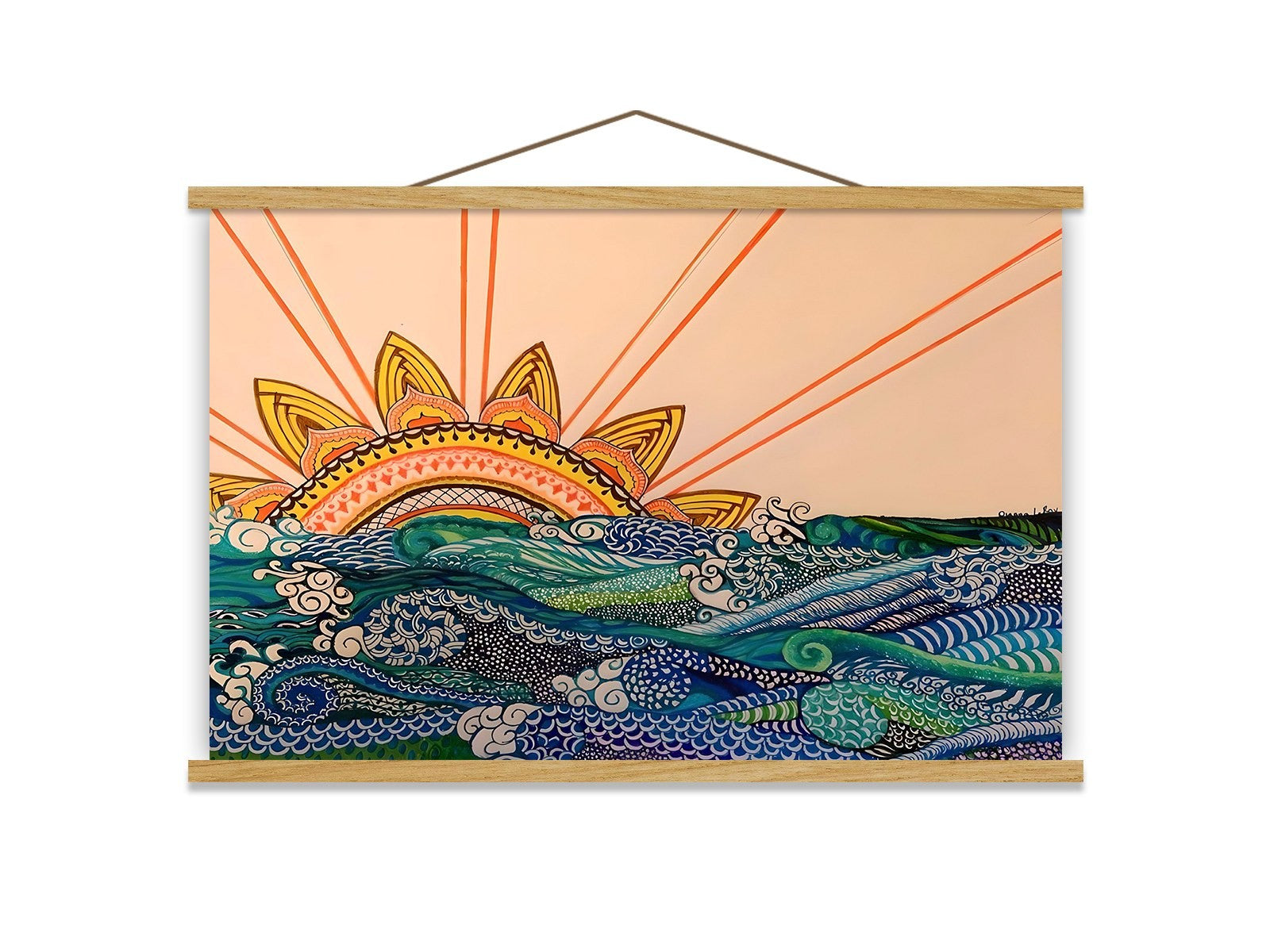 Mais do que uma simples decoração, este quadro é um investimento no seu bem-estar. A combinação de cores vibrantes e a moldura em madeira natural criam um ponto focal que transforma instantaneamente qualquer parede numa galeria de arte pessoal.