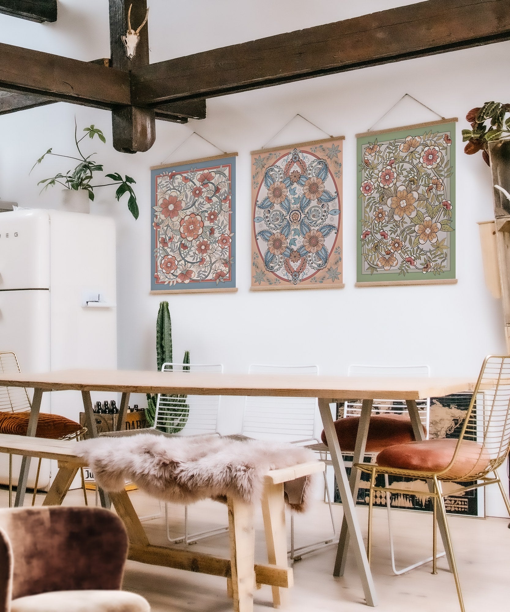 Este trio artístico não é apenas decoração - é uma declaração de estilo. As cores multicolor criam pontos focais dinâmicos que revitalizam instantaneamente qualquer divisão, desde a sala de estar ao quarto ou escritório.