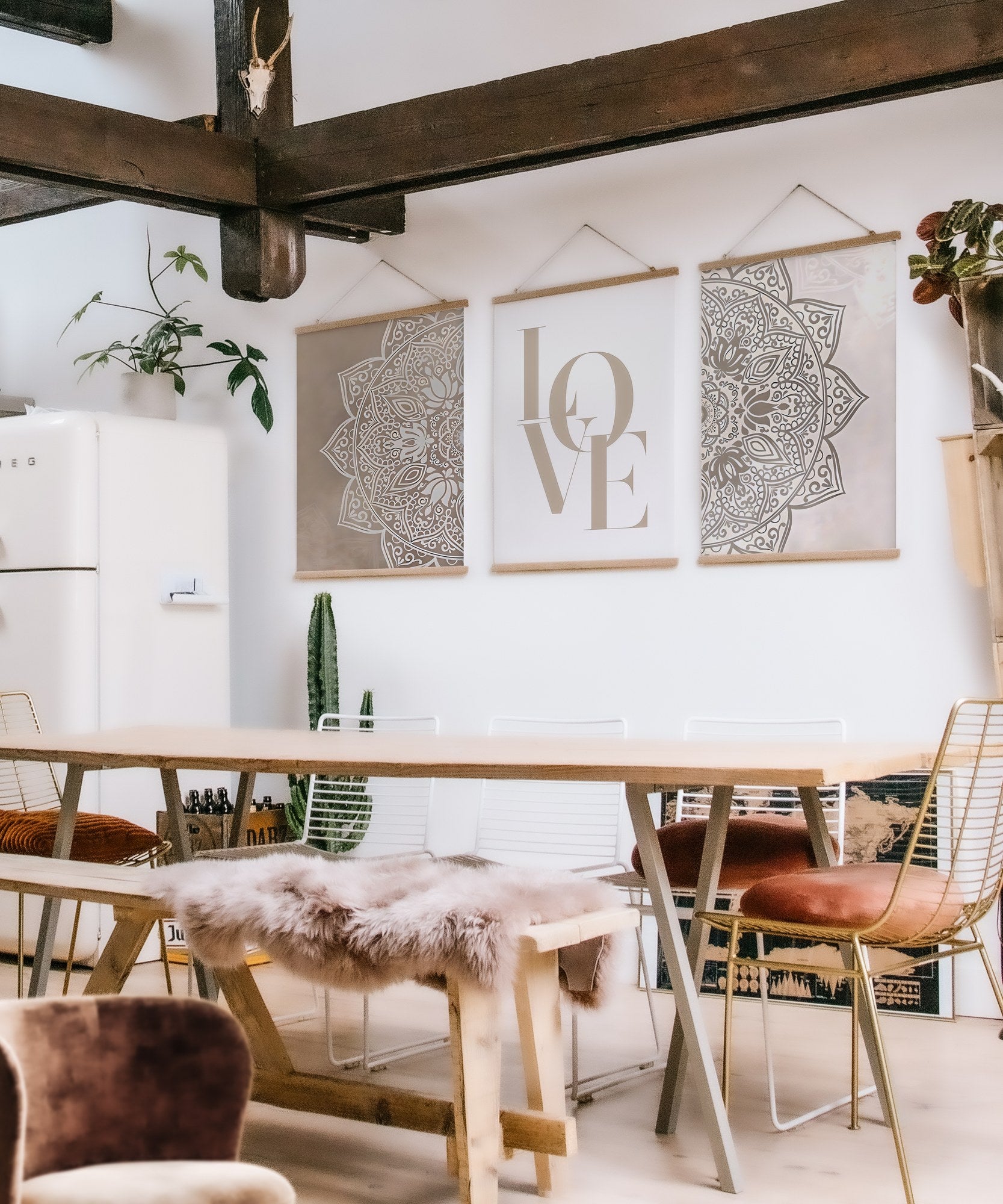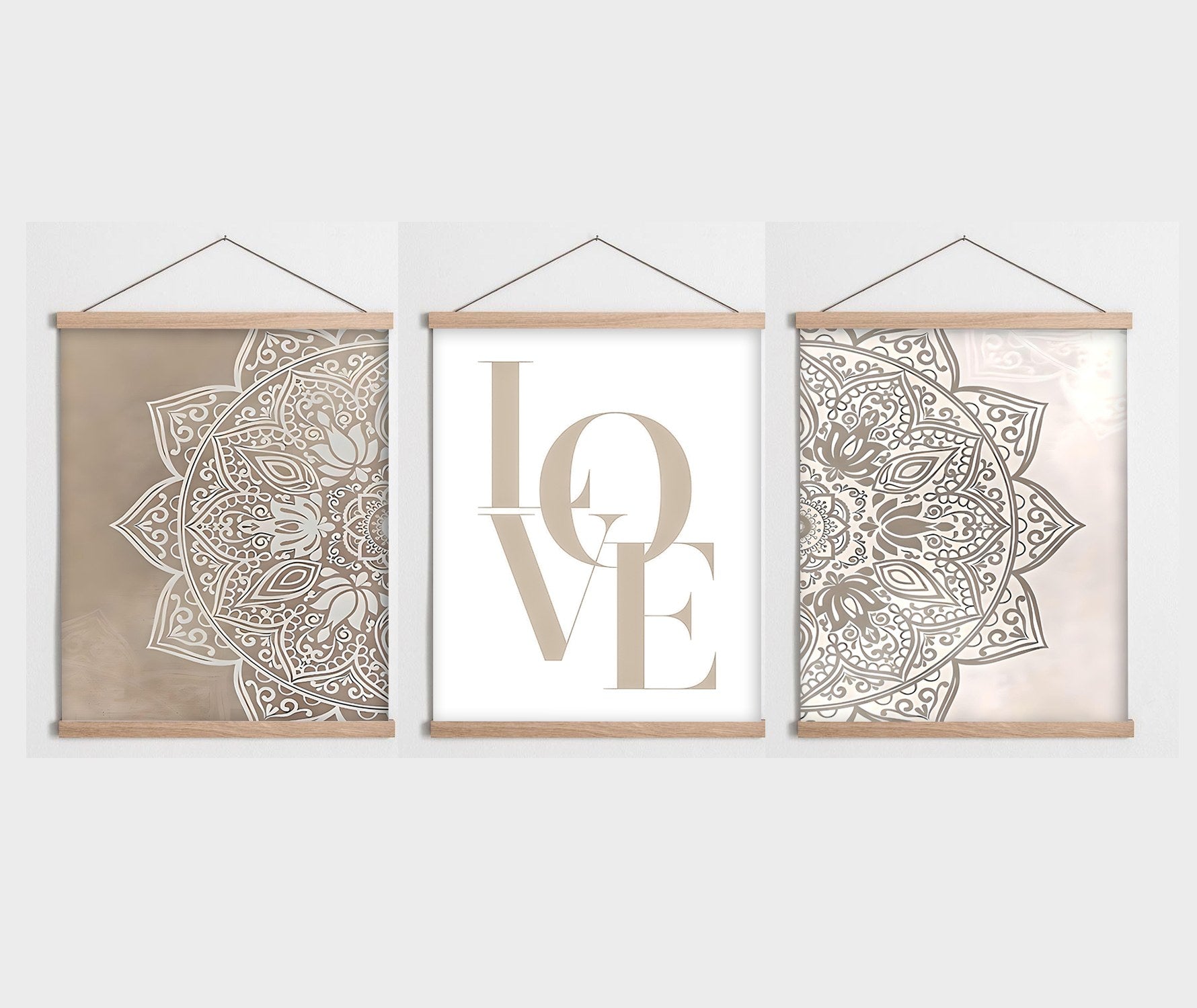Este conjunto de 3 peças oferece-lhe a flexibilidade de criar composições únicas, seja numa sala de estar, quarto, escritório ou corredor. A combinação harmoniosa entre o tecido misto de alta qualidade e a moldura em madeira natural garante um produto duradouro que mantém a sua beleza ao longo do tempo.