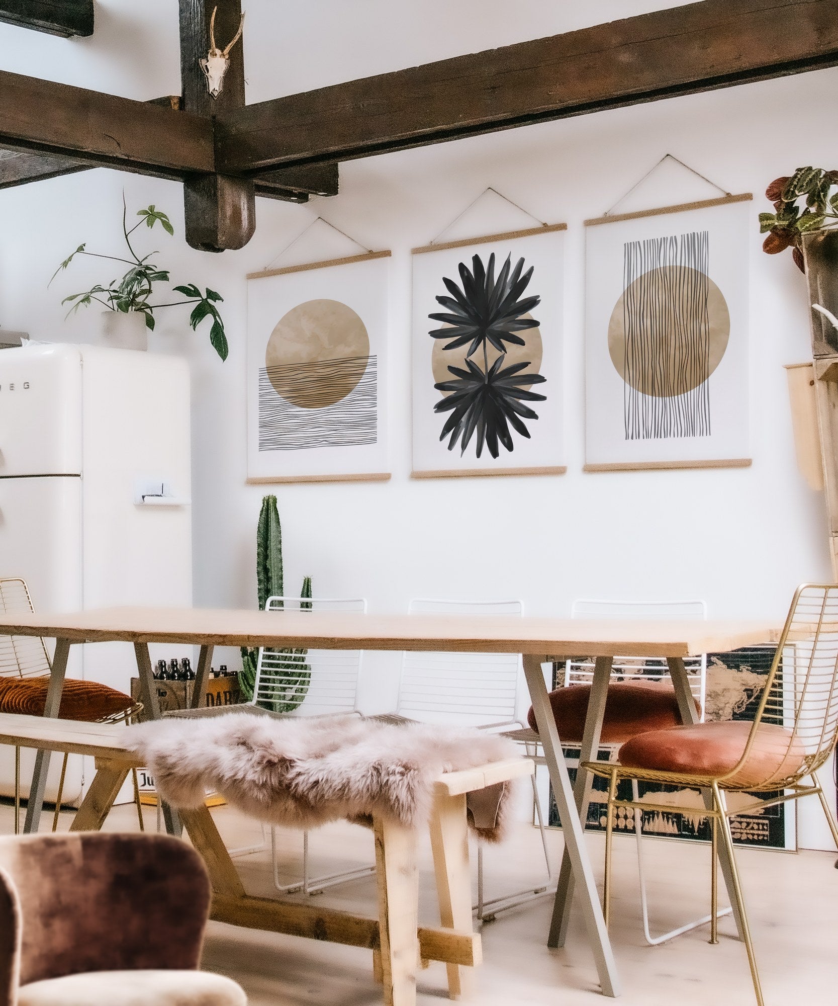 Este tríptico decorativo não é apenas uma peça de arte - é uma declaração de estilo. As três peças trabalham em harmonia para criar profundidade visual e sofisticação, transformando paredes vazias em pontos focais impressionantes.