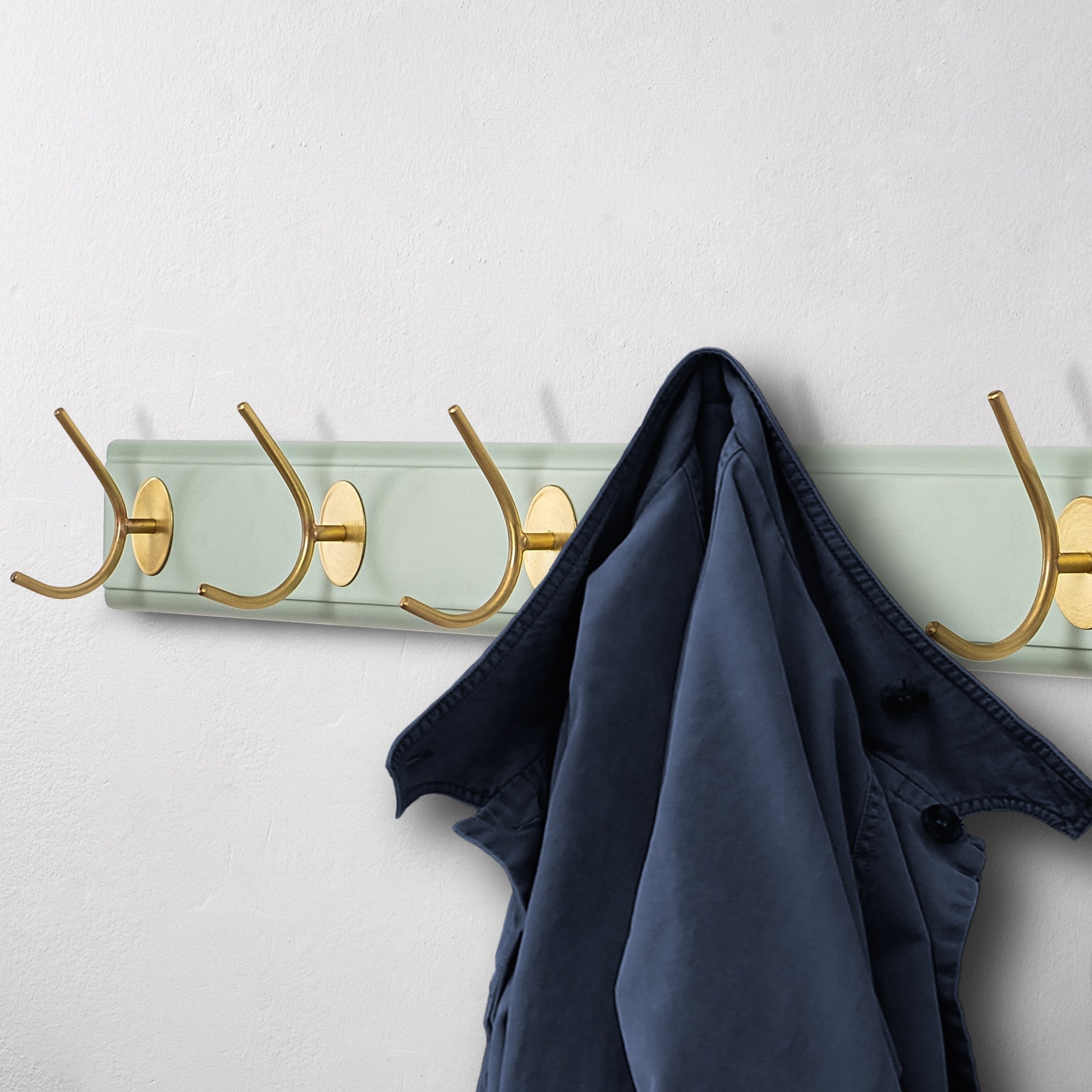 Cabide de Parede em Madeira Menta com Gancho Dourado em Latão - 100cm