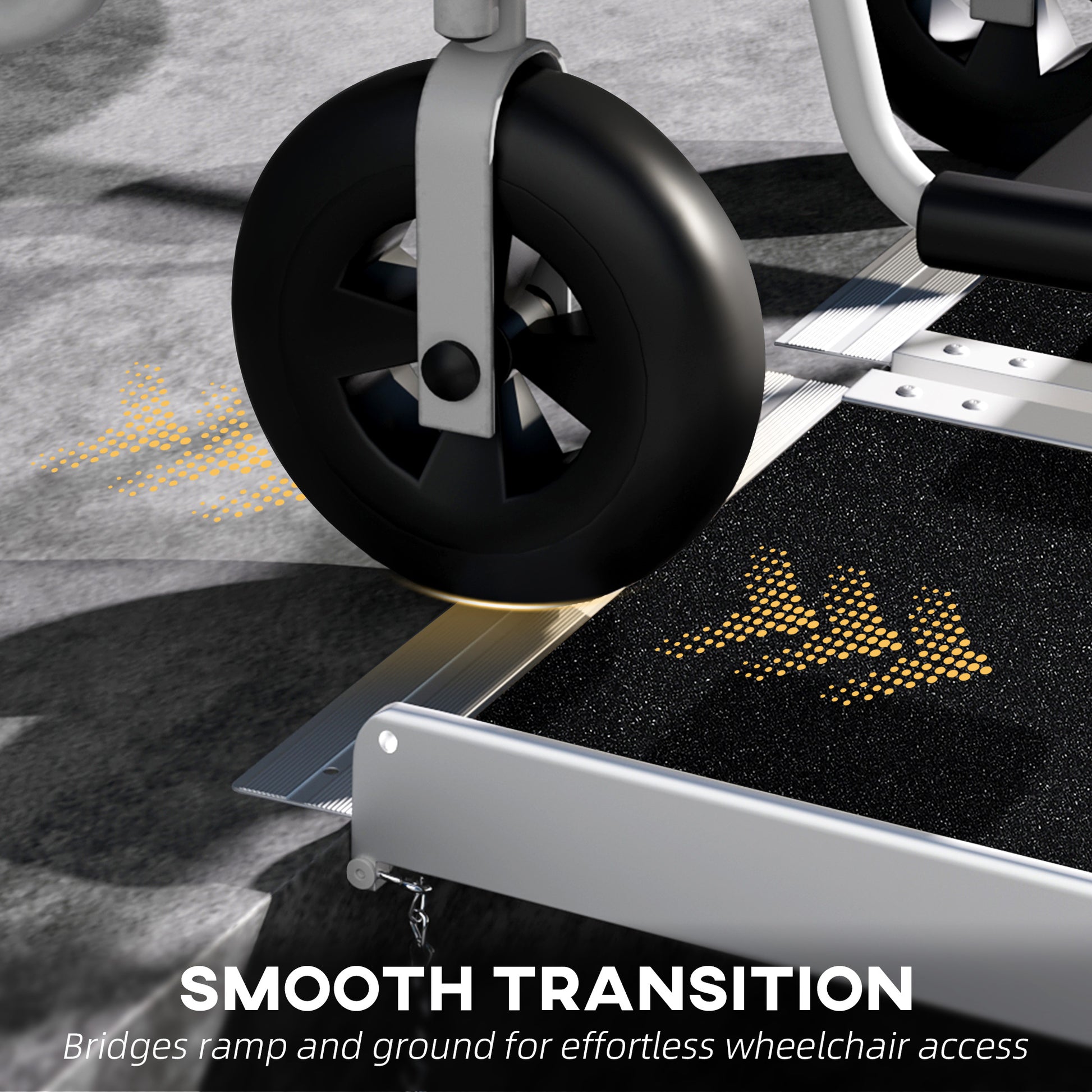 Esta rampa para cadeiras de rodas dobrável é a solução ideal para facilitar o acesso a diferentes espaços com desníveis. Fabricada em liga de alumínio resistente, oferece máxima segurança e estabilidade.