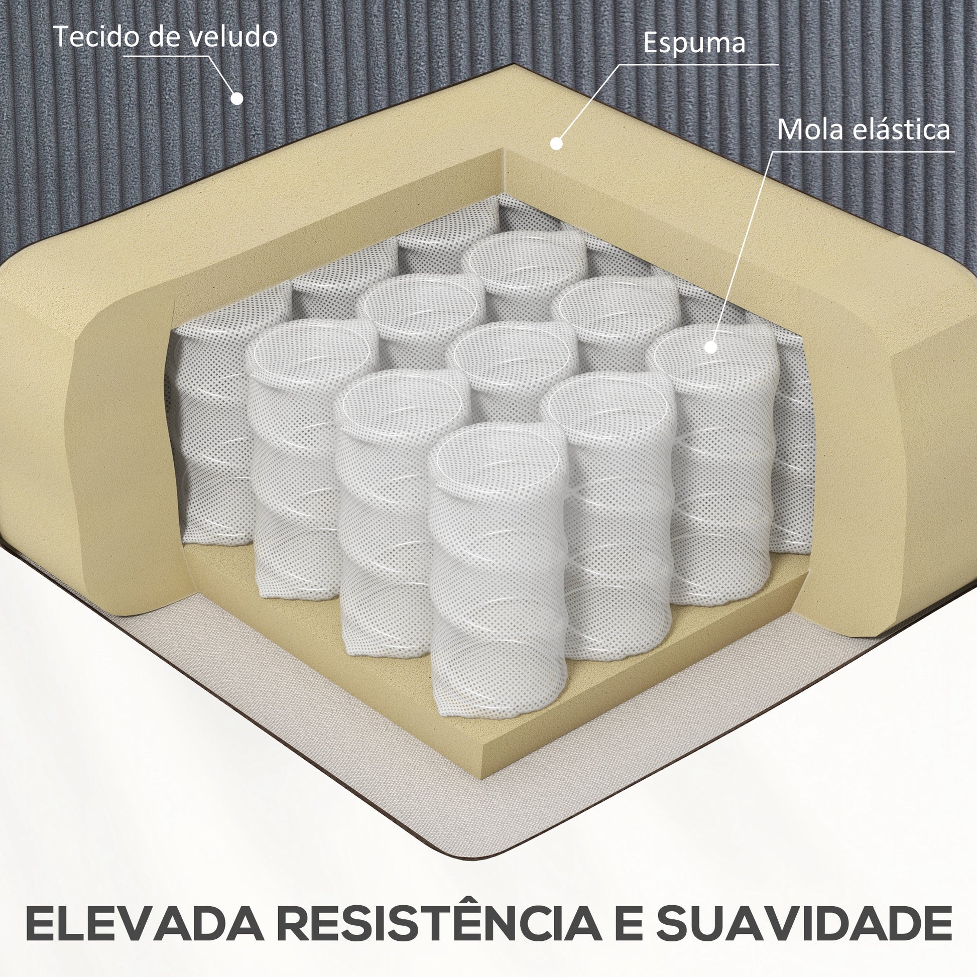 - Materiais: Tecido de veludo cotelê (100% poliéster), couro sintético, espuma e aço