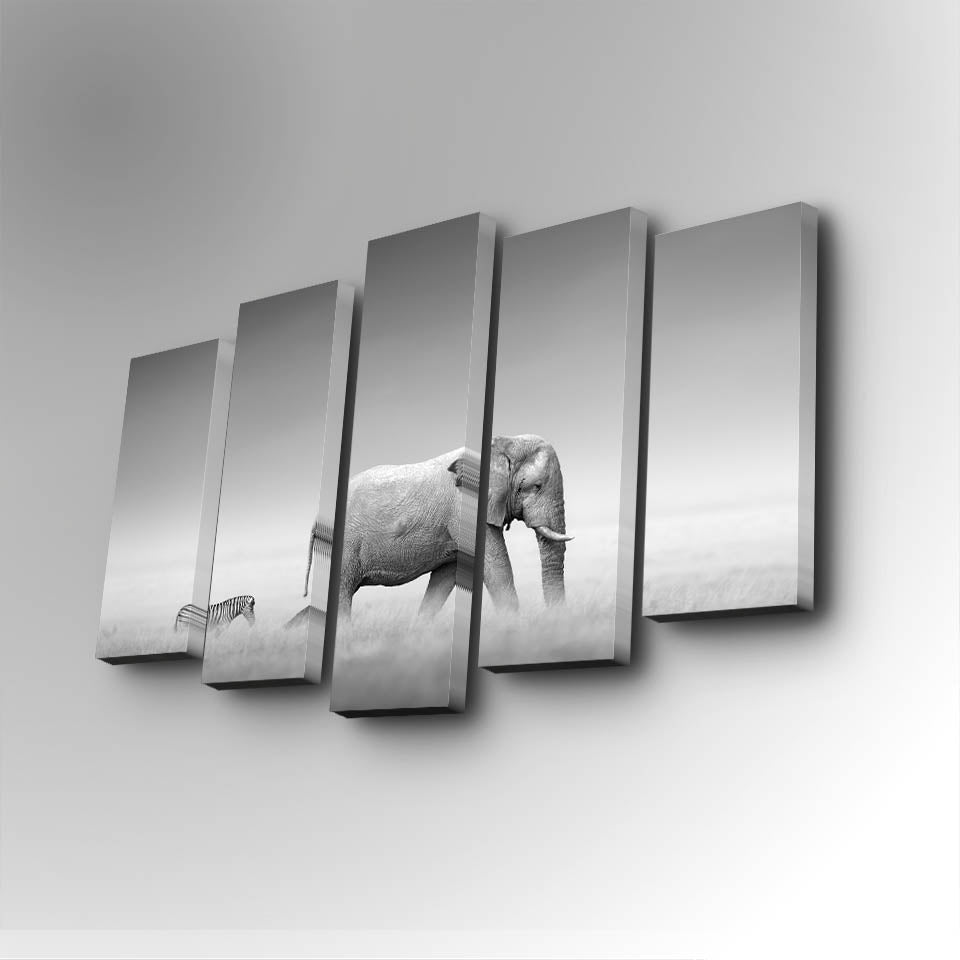 Quadro Decorativo em Tela (5 Peças) Multicolor — 82 x 50 cm, Tela Camurça 100%, Moldura de Madeira