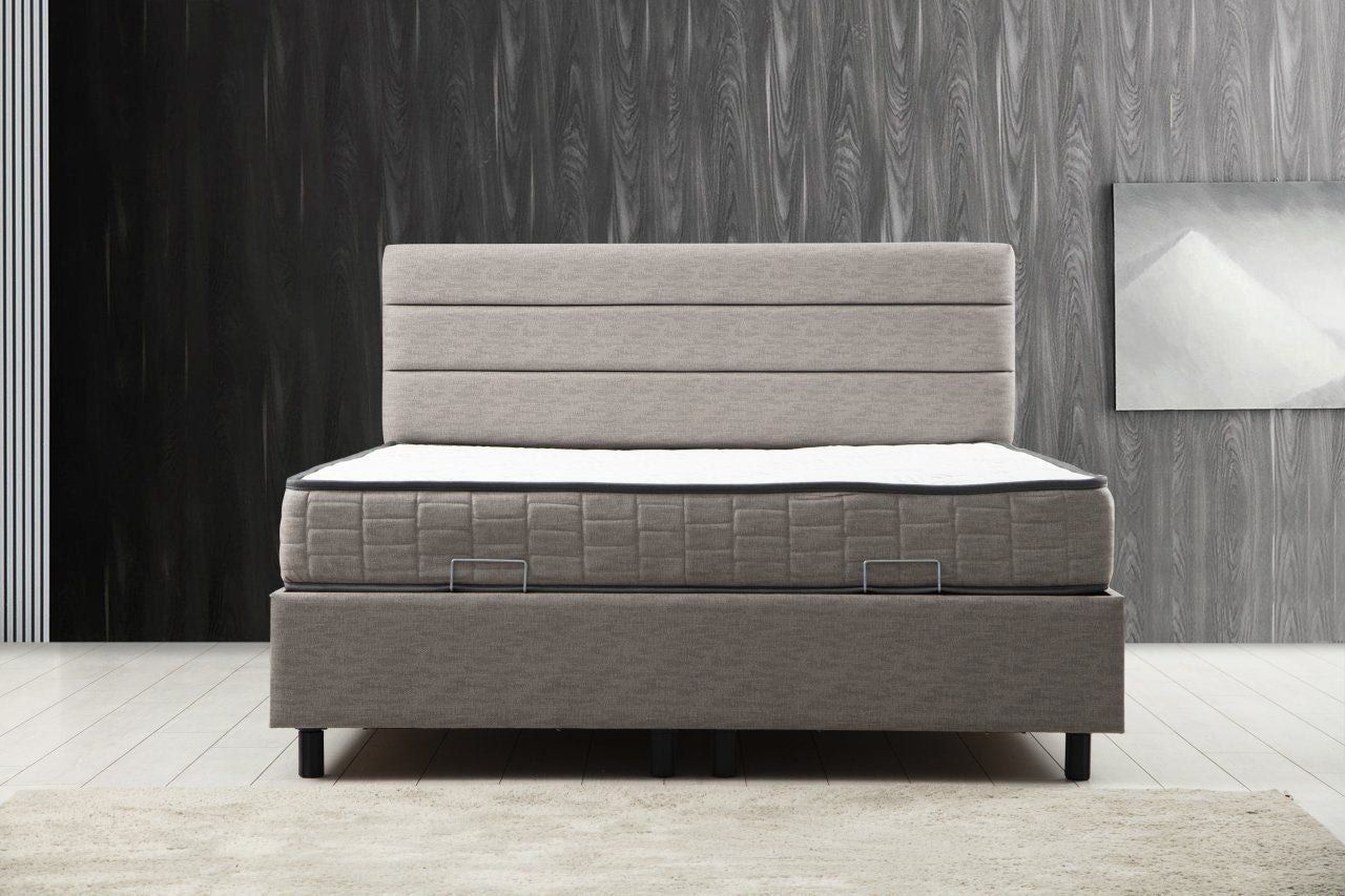 Colchão de casal, base e cabeceira – 150 cm x 200 cm – Cinza claro – Painéis de partículas