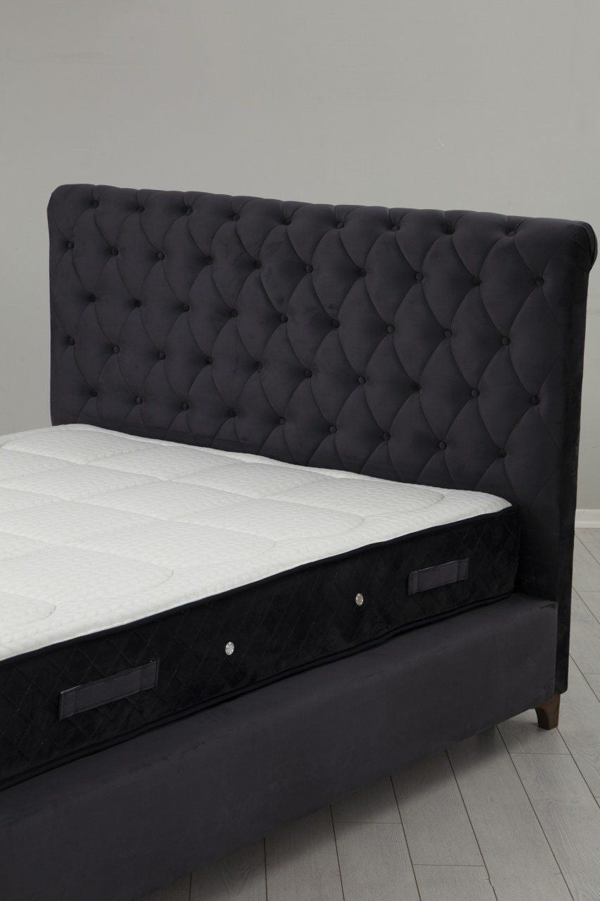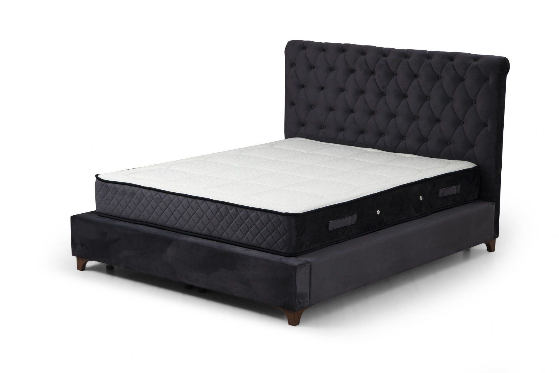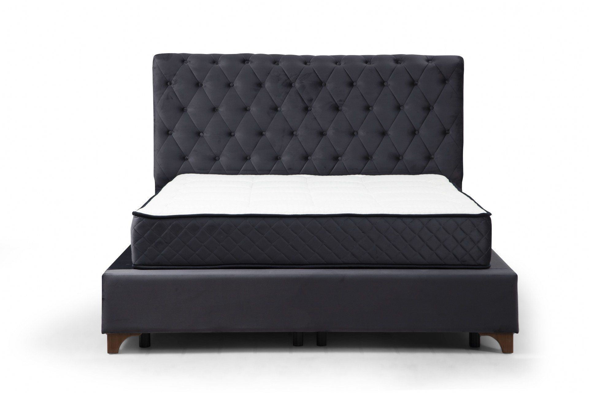 Colchão de casal com base e cabeceira – 135 cm x 190 cm – Antracite – Tecido, Madeira e Metal