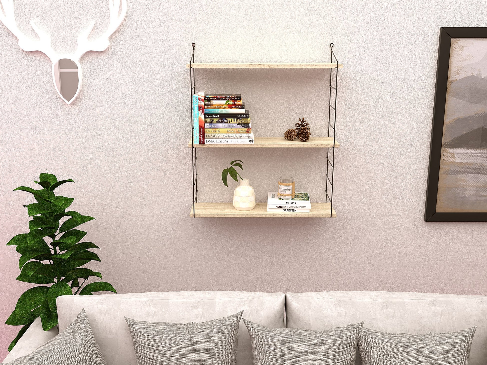 A cor traverten acrescenta um toque de calor e elegância a qualquer divisão, tornando-a uma peça versátil que pode complementar uma variedade de estilos de decoração. Além disso, o design montado significa que pode desfrutar desta prateleira logo que a retire da caixa, sem complicações nem stress.