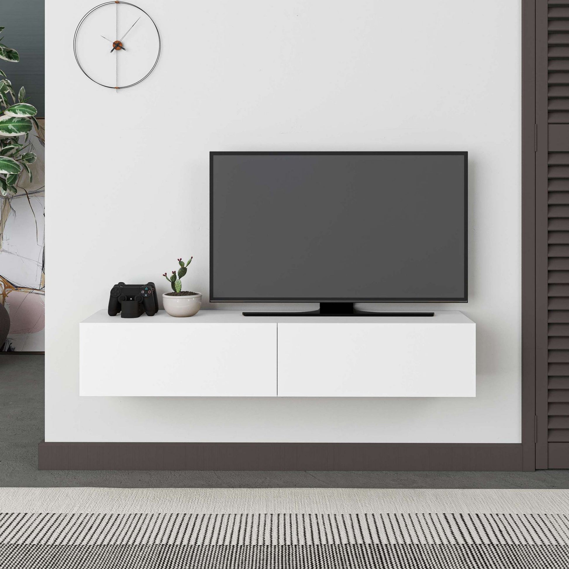 Transforme o seu espaço de entretenimento com esta mesa TV branca de design moderno e minimalista. Com 135cm de largura, oferece o suporte perfeito para televisões até 20kg de capacidade, garantindo estabilidade e segurança para os seus equipamentos.