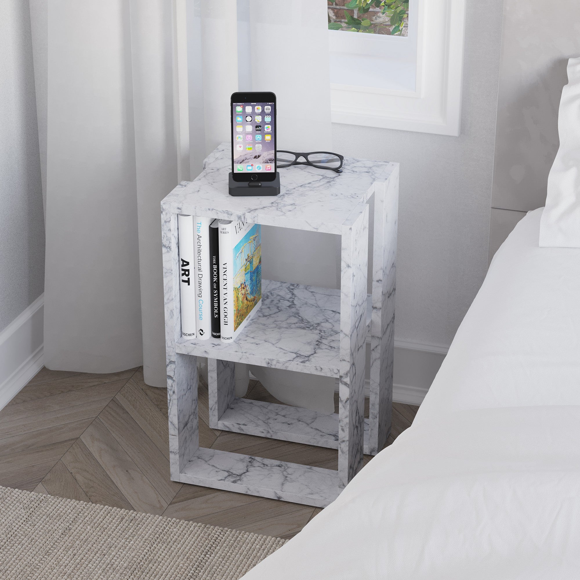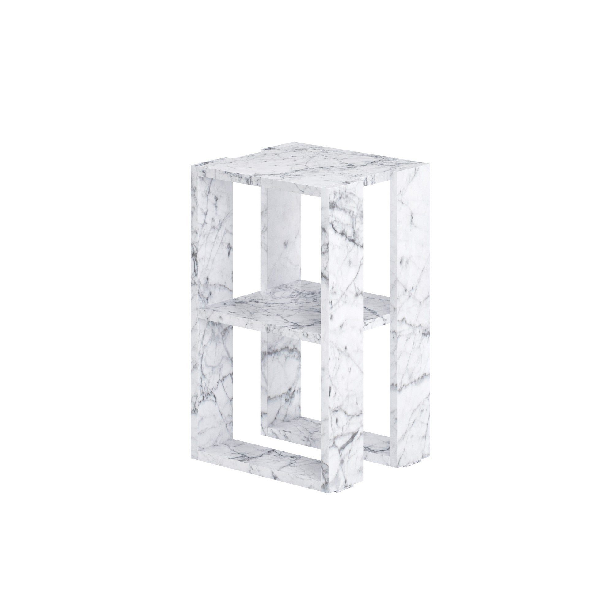 Mesa de Cabeceira – 30 cm x 30 cm x 55 cm – Mármore de Carrara – Painel de partículas revestido a melamina