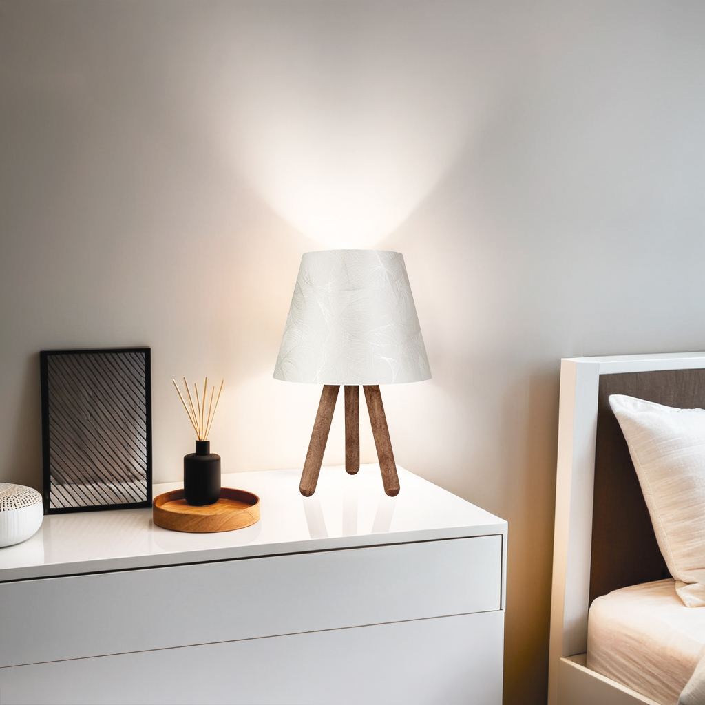 Candeeiro de Mesa – 22 x 33 cm – Branco e Nogueira – 70% Madeira de Faia / 30% Tecido PVC