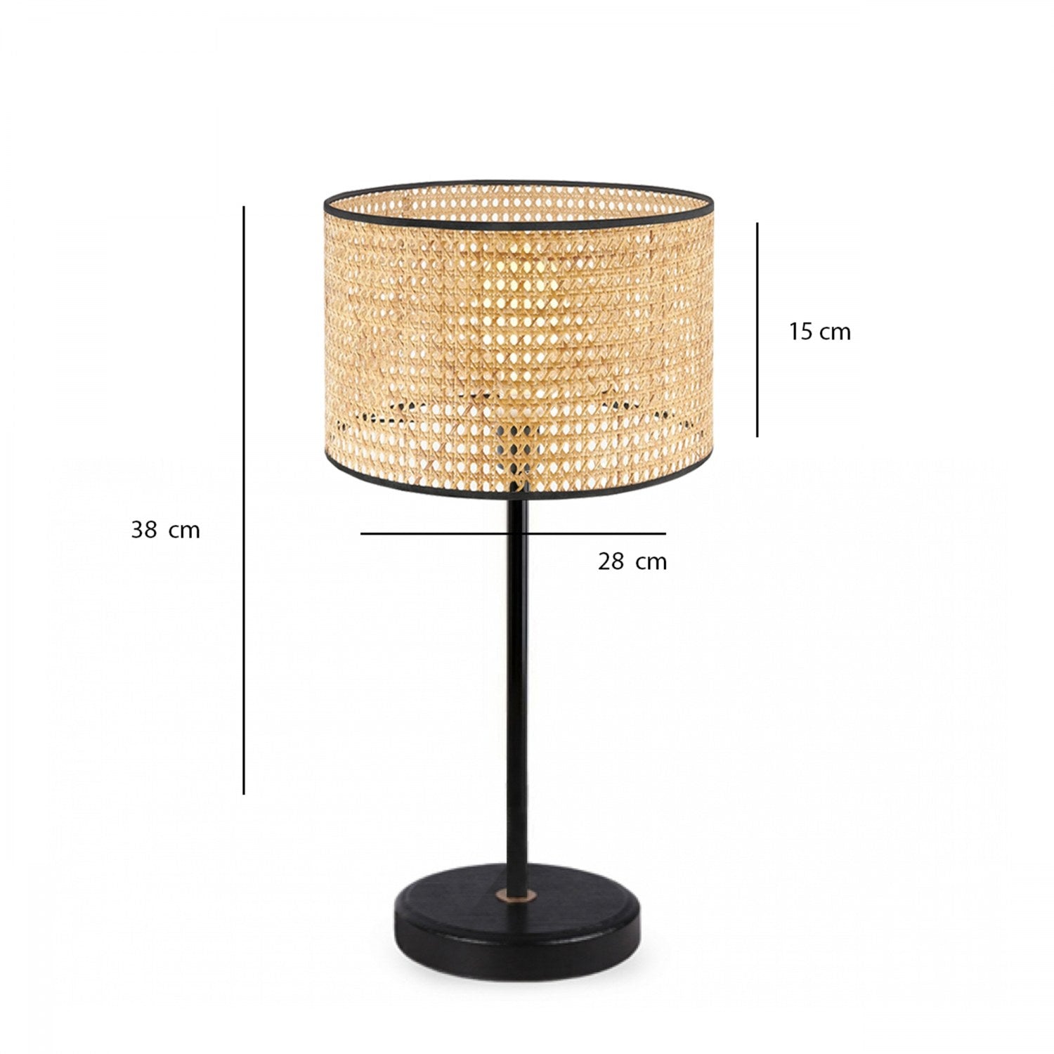 Candeeiro de Mesa – 28 cm diâmetro – Creme e Preto – Rattan e Metal