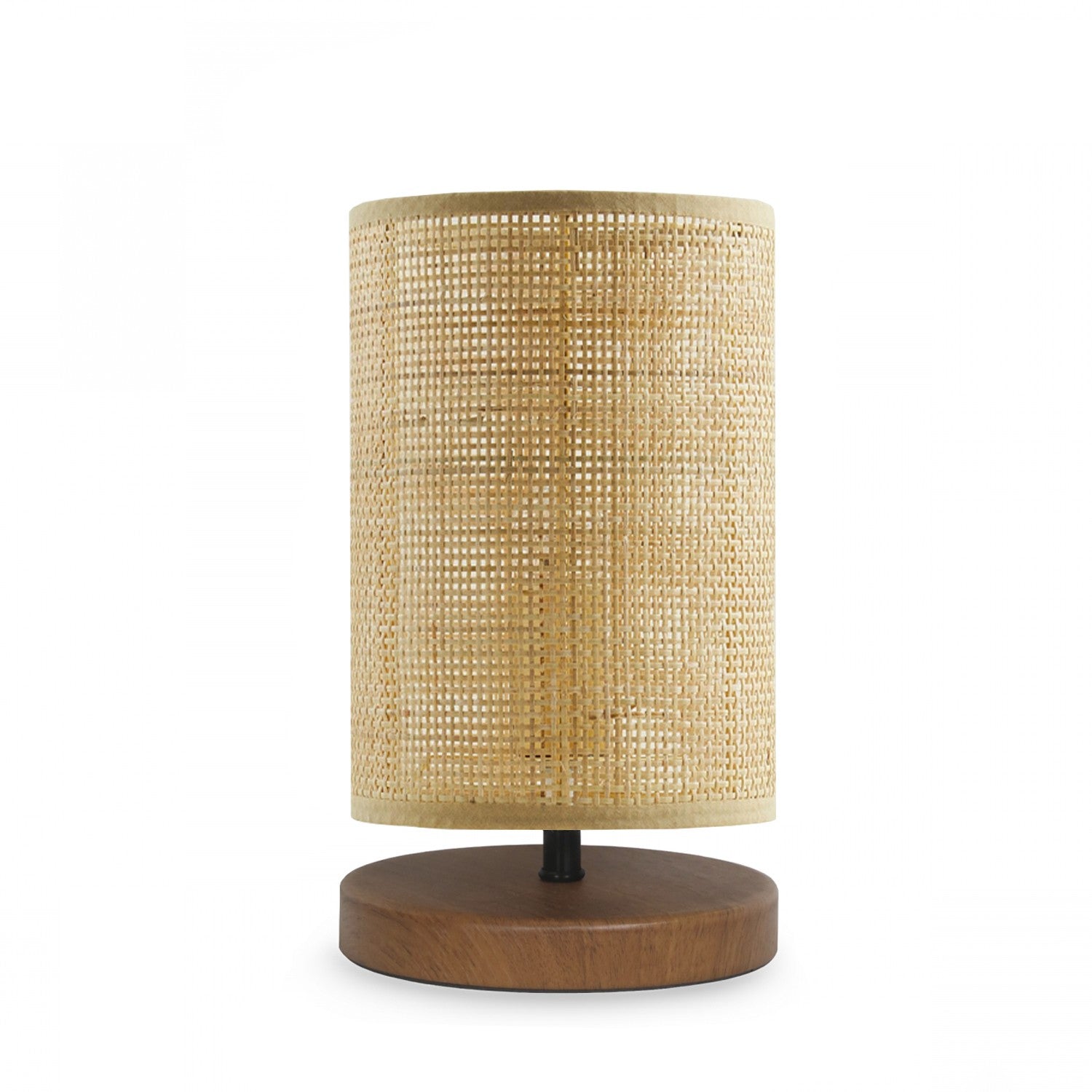 Candeeiro de mesa em madeira – 25 cm – Bege – madeira e bambu