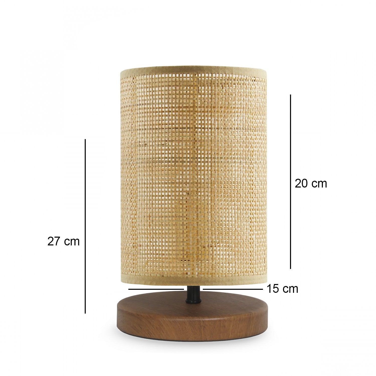 Ilumine o seu espaço com o brilho quente e convidativo do nosso candeeiro de mesa em madeira. Fabricado com um corpo de madeira e encimado por um chapéu de bambu, este candeeiro exala charme e elegância naturais. O complemento perfeito para qualquer divisão, este candeeiro criará uma atmosfera acolhedora que o fará sentir-se em casa.