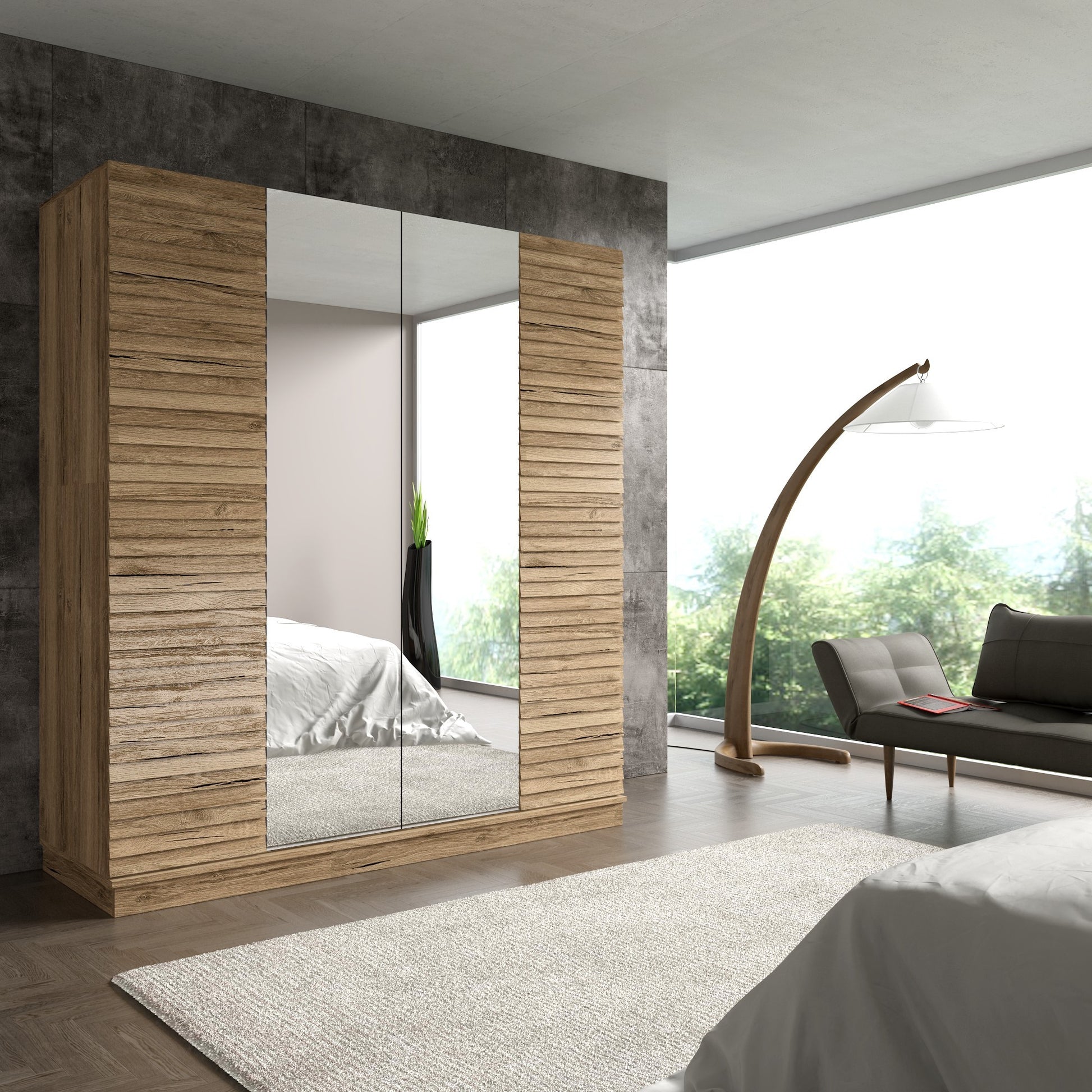 Guarda-roupa de chipboard – 180 cm x 200 cm x 59 cm – Cor de Noz