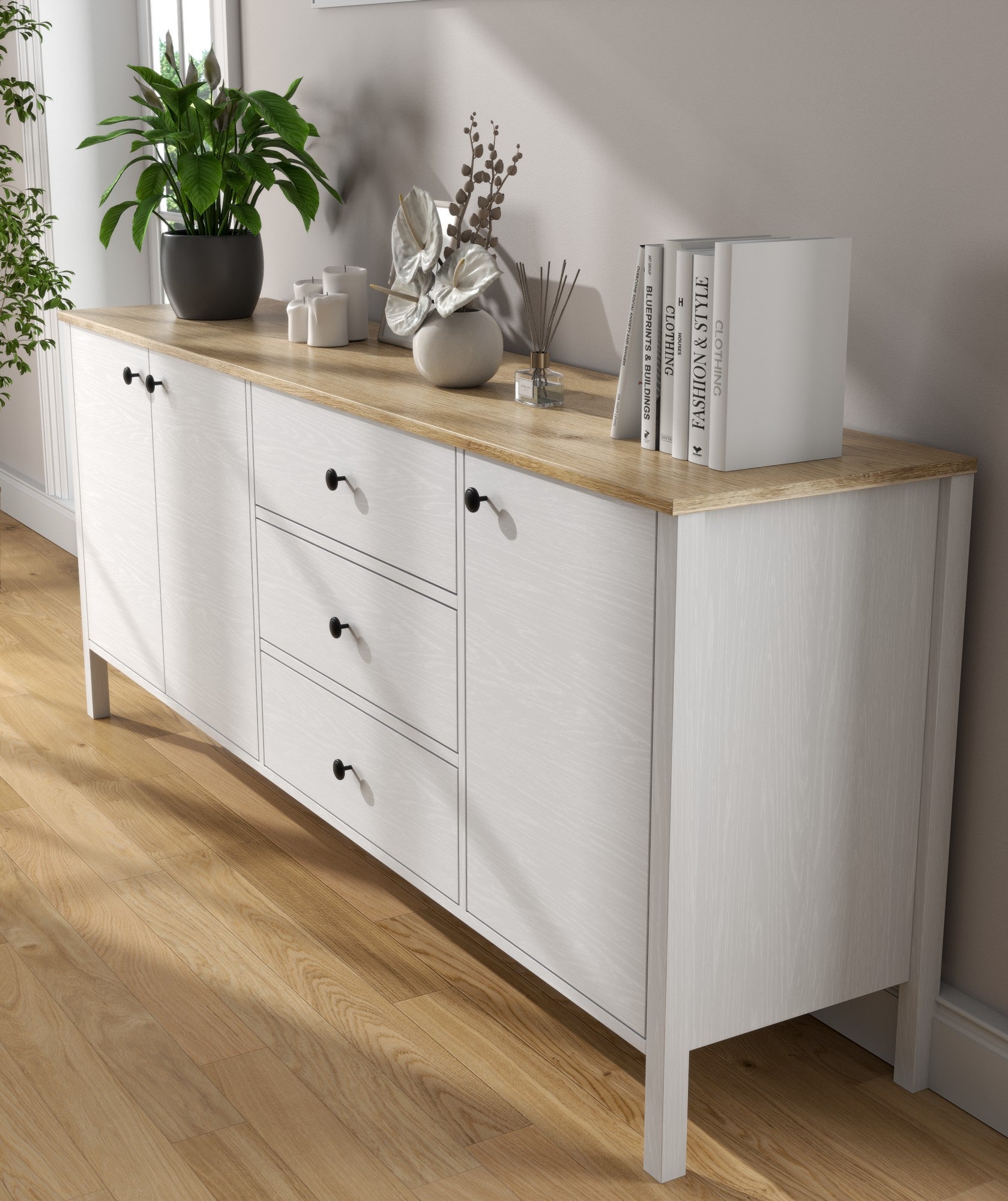 Se você precisa de armazenamento extra na sua sala de estar, corredor ou quarto, este console é a solução perfeita. A largura de 200cm, altura de 82cm e profundidade de 44cm oferecem bastante espaço para exibir decorações, armazenar livros ou organizar eletrônicos. A altura das pernas de 15cm permite uma limpeza fácil embaixo, enquanto a opção de fixá-lo na parede adiciona estabilidade extra.
